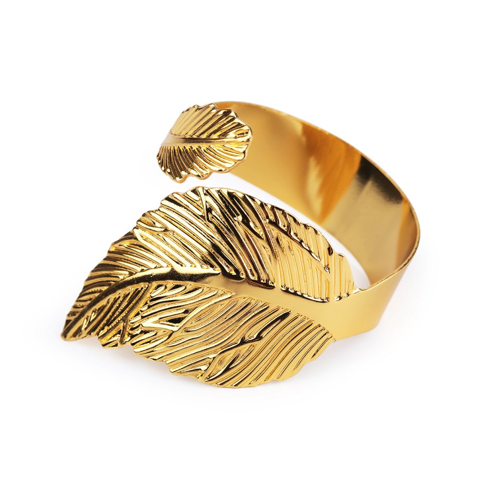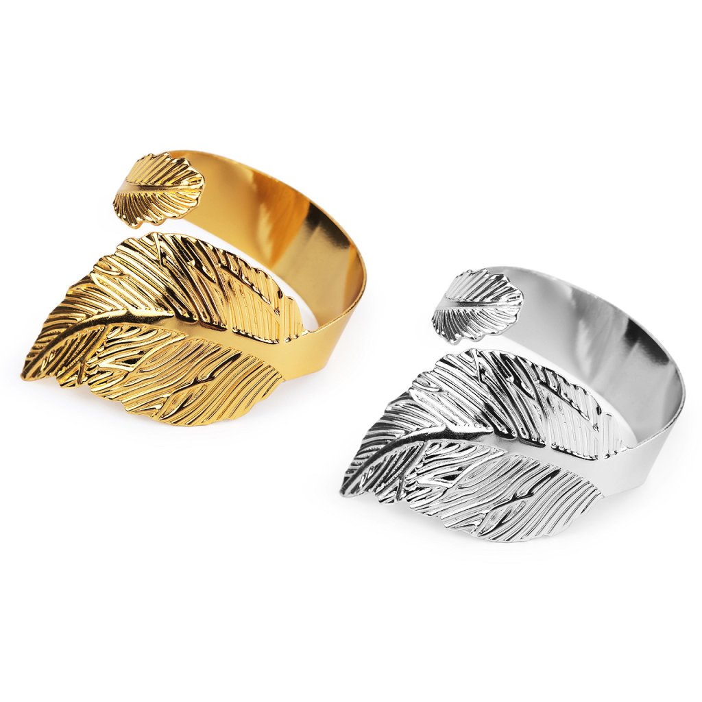 Ein Serviettenring aus Metall mit Blattdekor ist eine elegante Dekoration für den festlichen Tisch. Er unterstreicht perfekt die festliche Atmosphäre. Er hat eine Aussparung, die das Einlegen einer Serviette erleichtert.