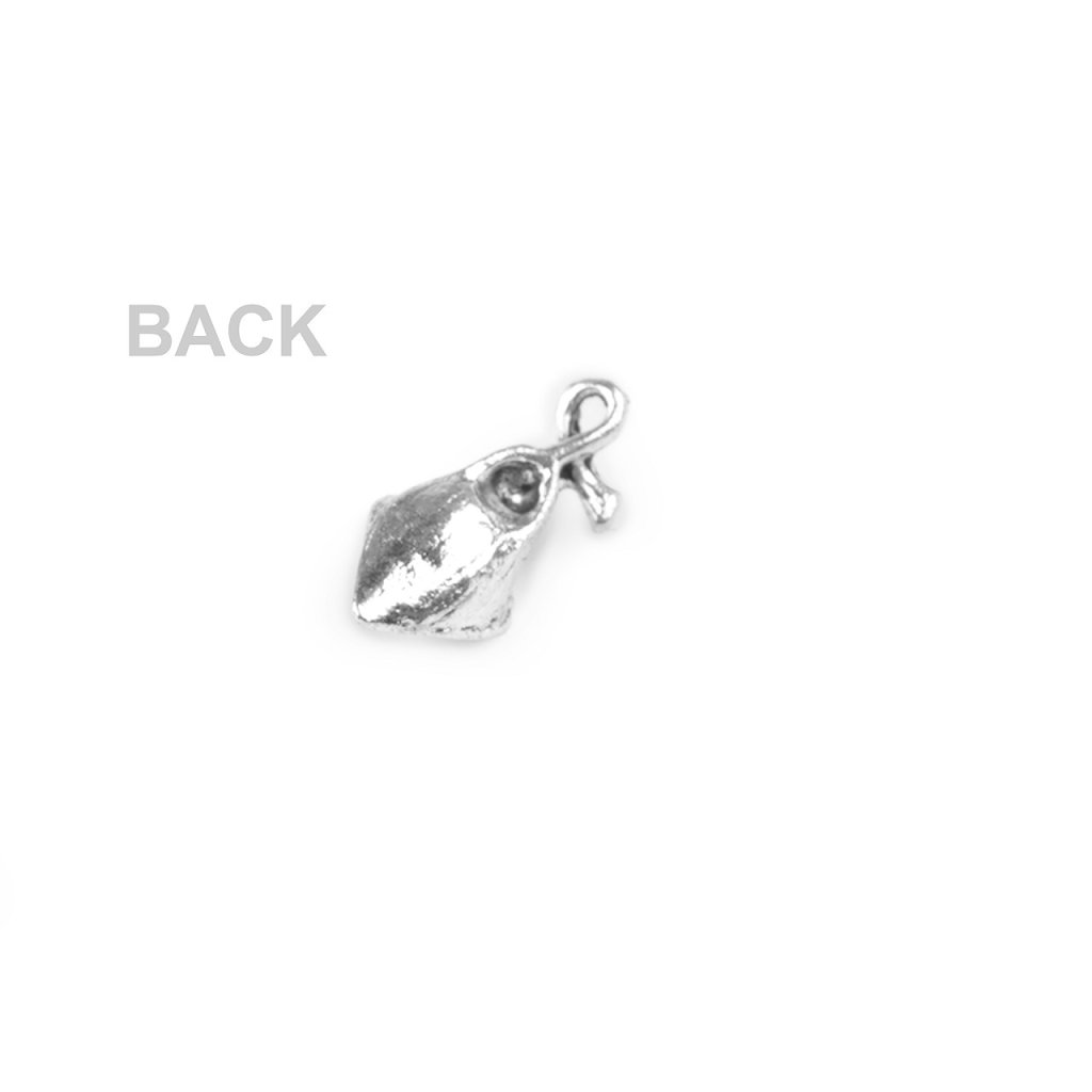 Der dekorative 3D Blumenanhänger ist mit einer umwickelten Perle verziert. Er weist von allen Seiten eine auffällige Verarbeitung auf. Die Öse mit der Öse befindet sich an der Oberseite. Der Anhänger ist aus nicht magnetischem Metall gefertigt.