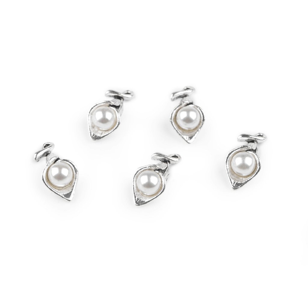 Metallanhänger/Zipper-Schlaufe 3D-Blume mit Perle, 9 x 18 mm