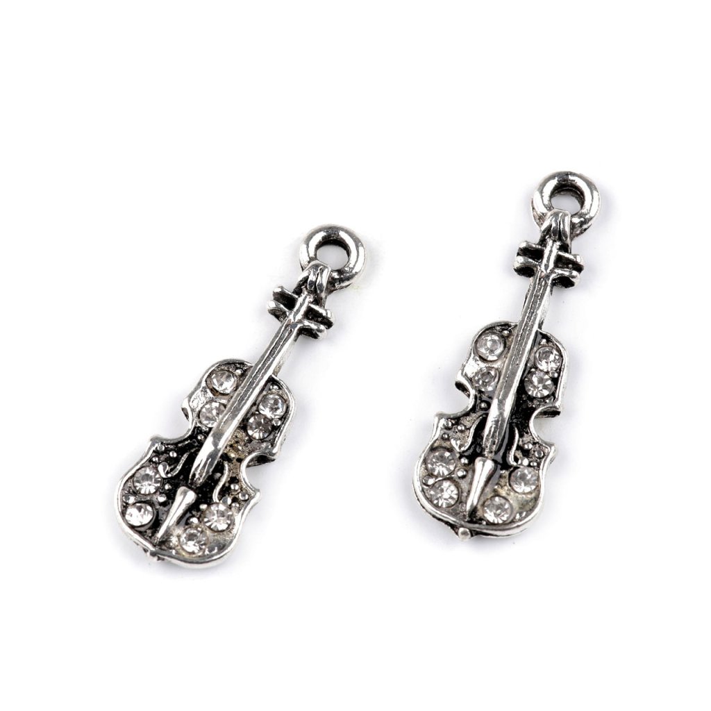 Metallanhänger/Zipper-Schlaufe mit geschliffenen Steinchen Herz, Geige, Krönchen