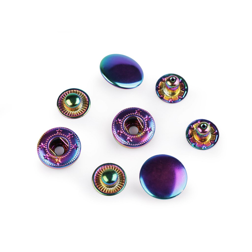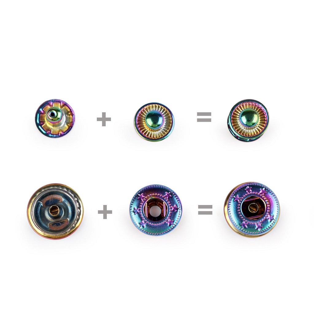 Metalldruckknöpfe für mitteldicke Stoffe, Ø 15 mm, regenbogenfarbig