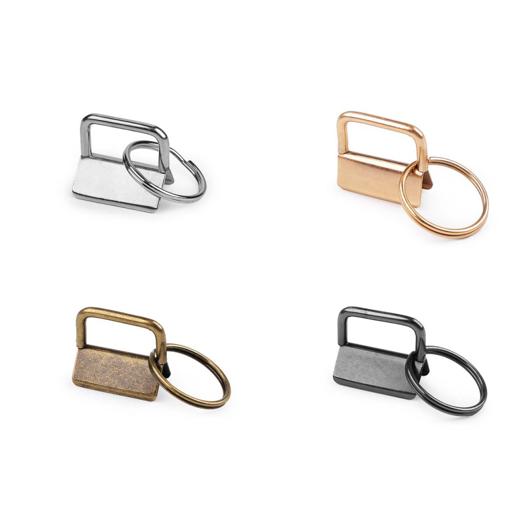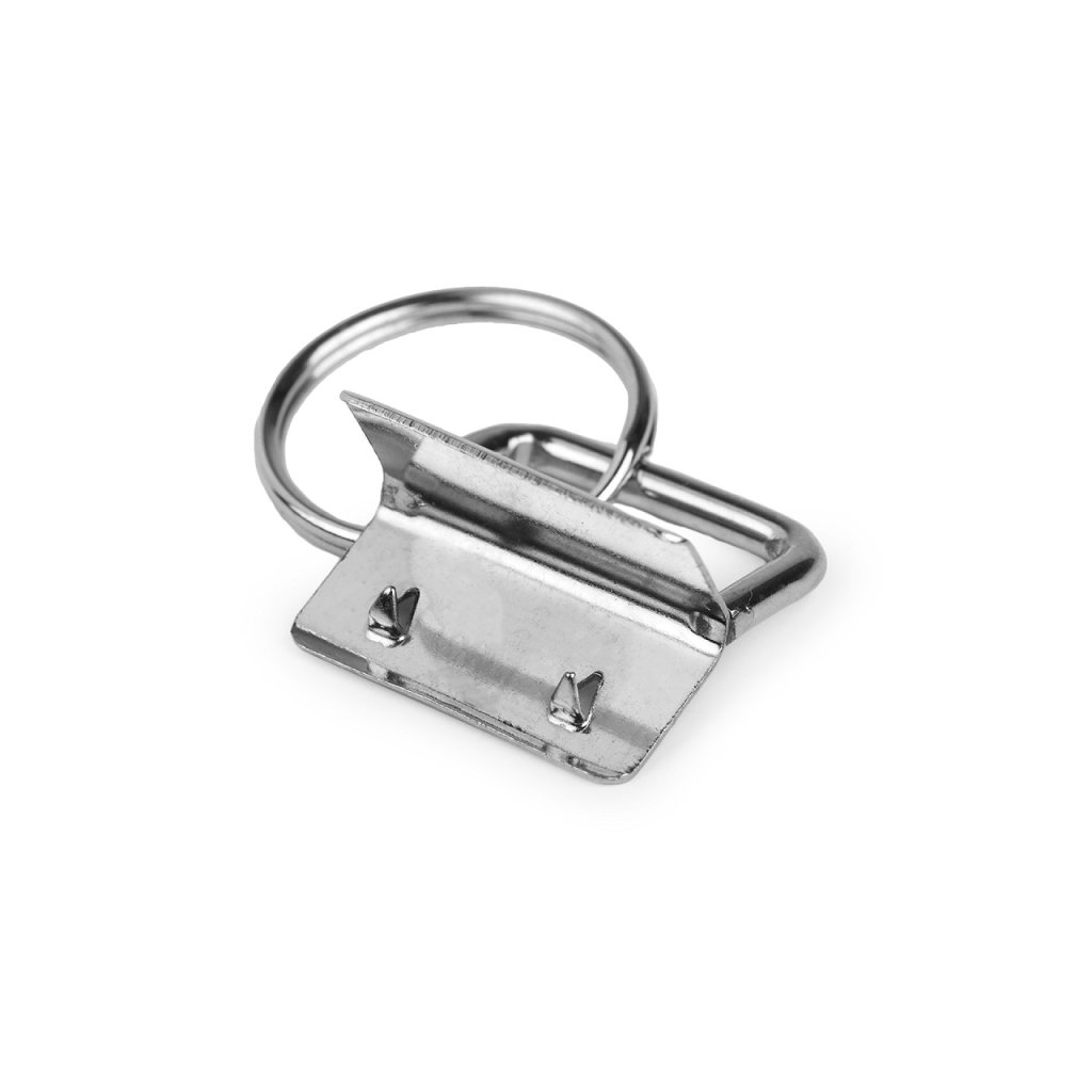 Die Metallendkappe ist für die Herstellung von Schlüsselanhänger geeignet, da ein Ring daran befestigt ist. Befestigen Sie es am Gurt, indem Sie es mit einer Zange zusammendrücken. Dank der Zähne hält es gut. Die geeignete Stoffdicke beträgt ca. 3 mm.