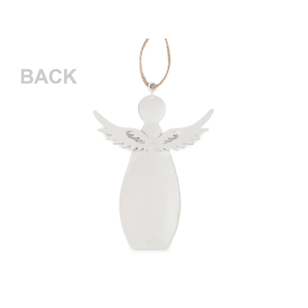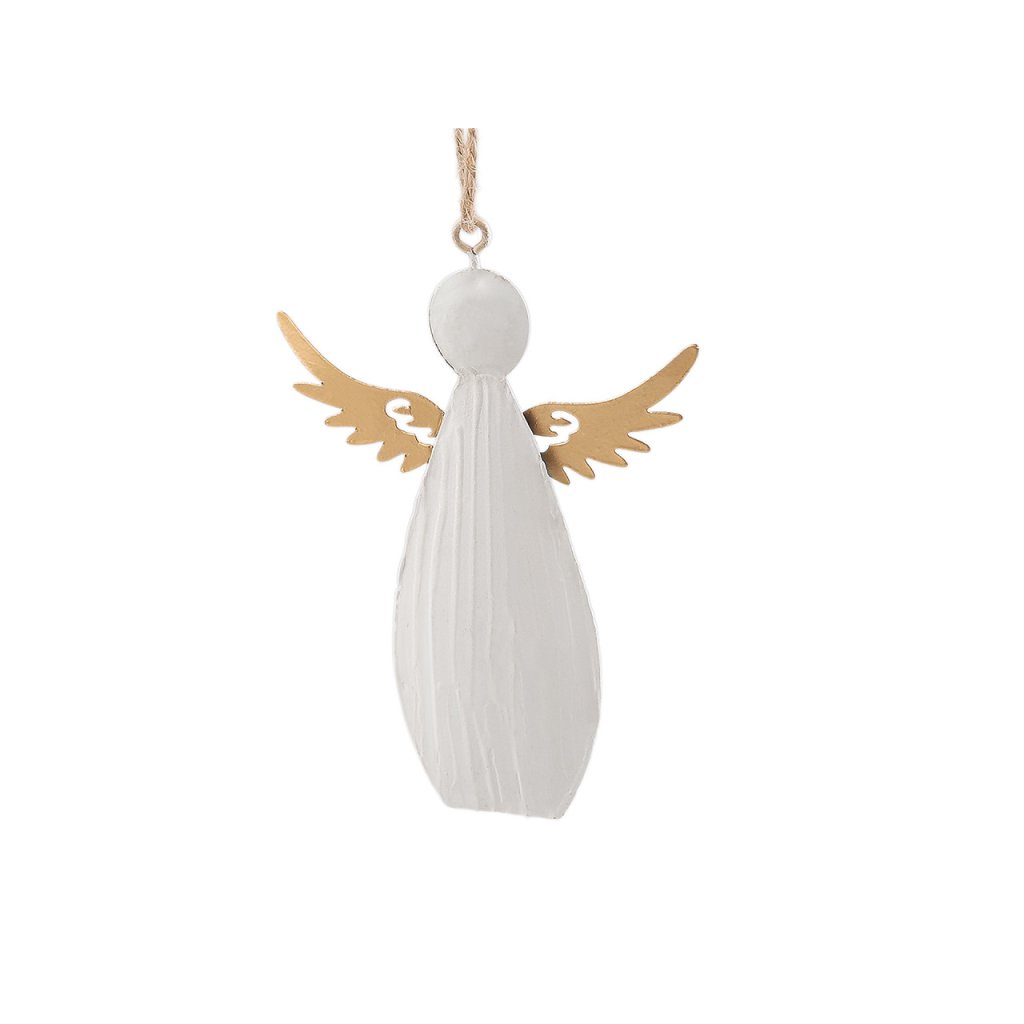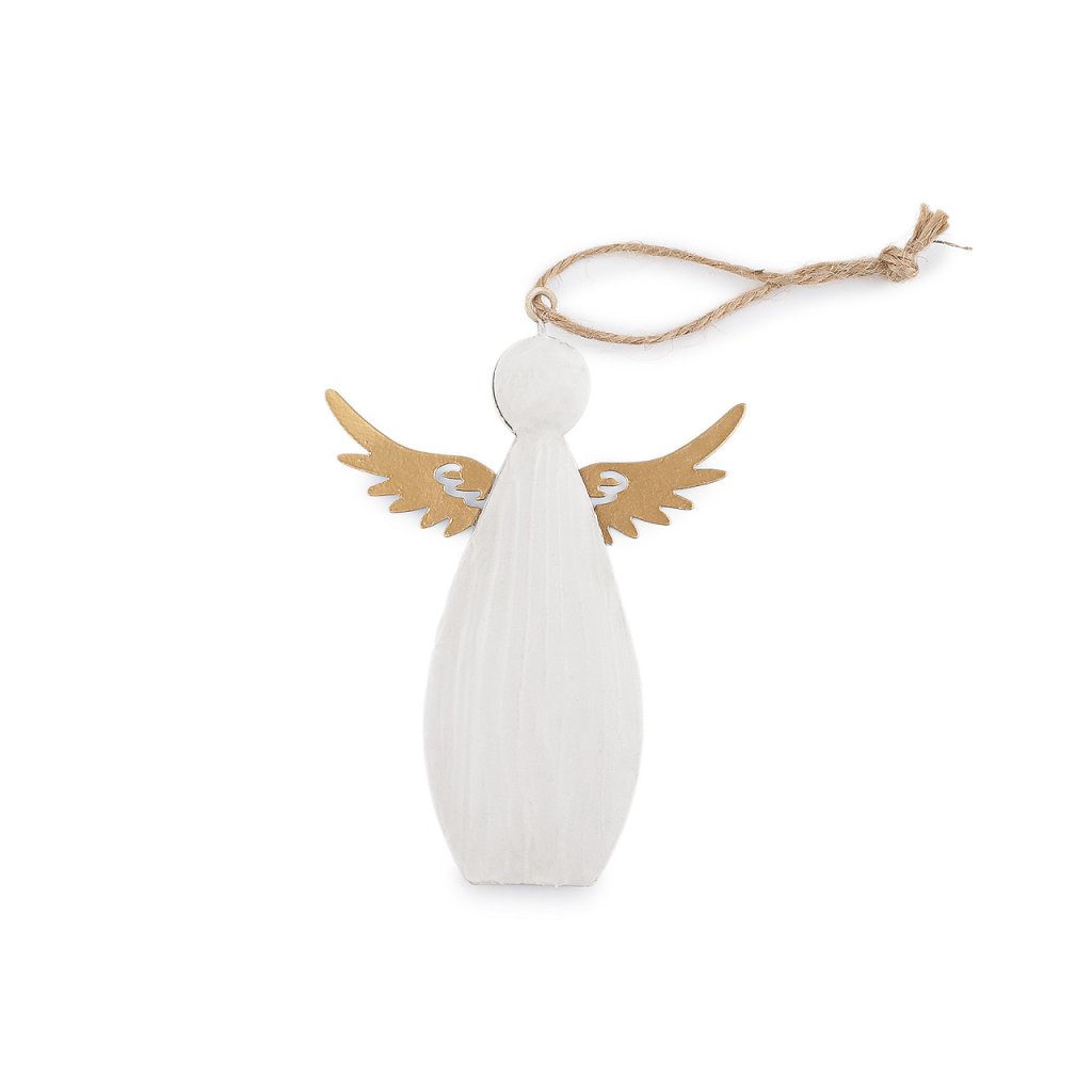 Dieser dekorative Metallengel im minimalistischen Design wirkt zeitlos und fügt sich perfekt in jede Einrichtung ein. Er verleiht Ihrem Zuhause eine behagliche und sichere Atmosphäre. Er eignet sich ideal zum Dekorieren von Kränzen, Weihnachtsbäumen, Zweigen in Vasen usw. Es hat eine Schlaufe zum Aufhängen.