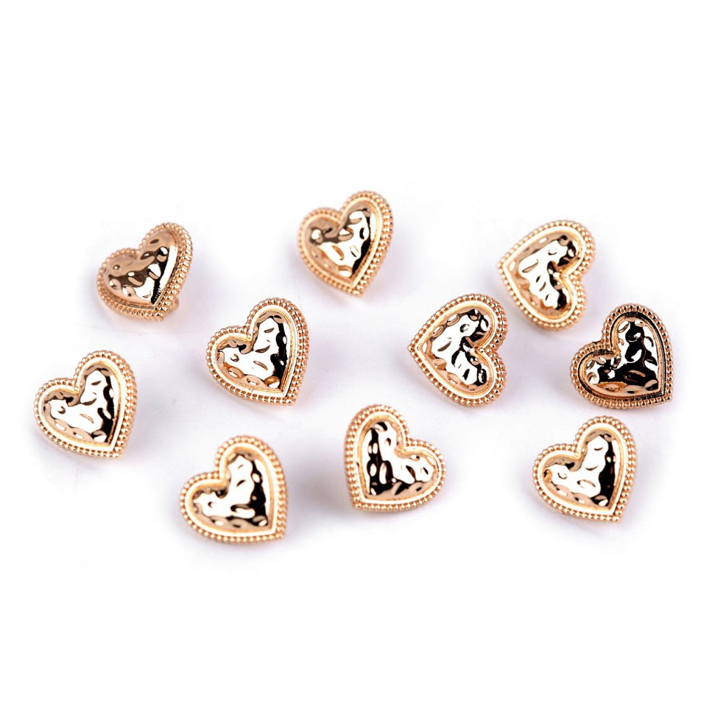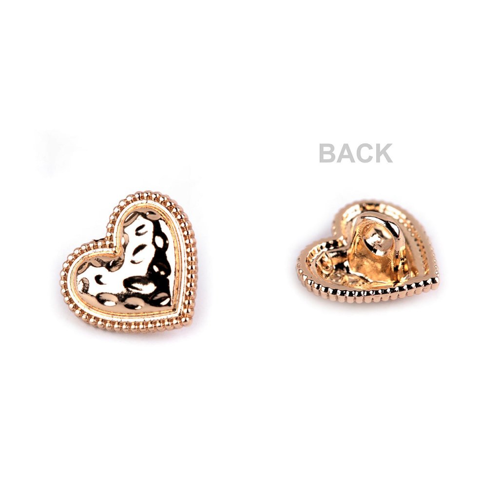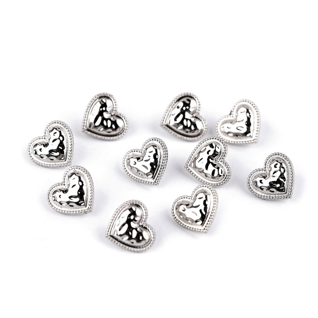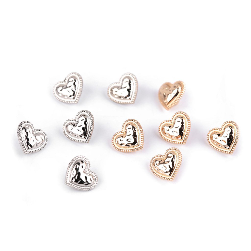 Interessant sind herzförmige Metallknöpfe mit gehämmerter Oberfläche. Sie stechen auf Jacken, Hemden, Kleidern usw. hervor. Sie können sie auch zum Dekorieren von Engeln und anderen Figuren verwenden. Sie haben eine Naht unten. Die Größe der Schaltflächen finden Sie in dieser Tabelle .