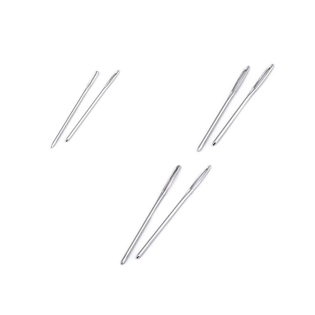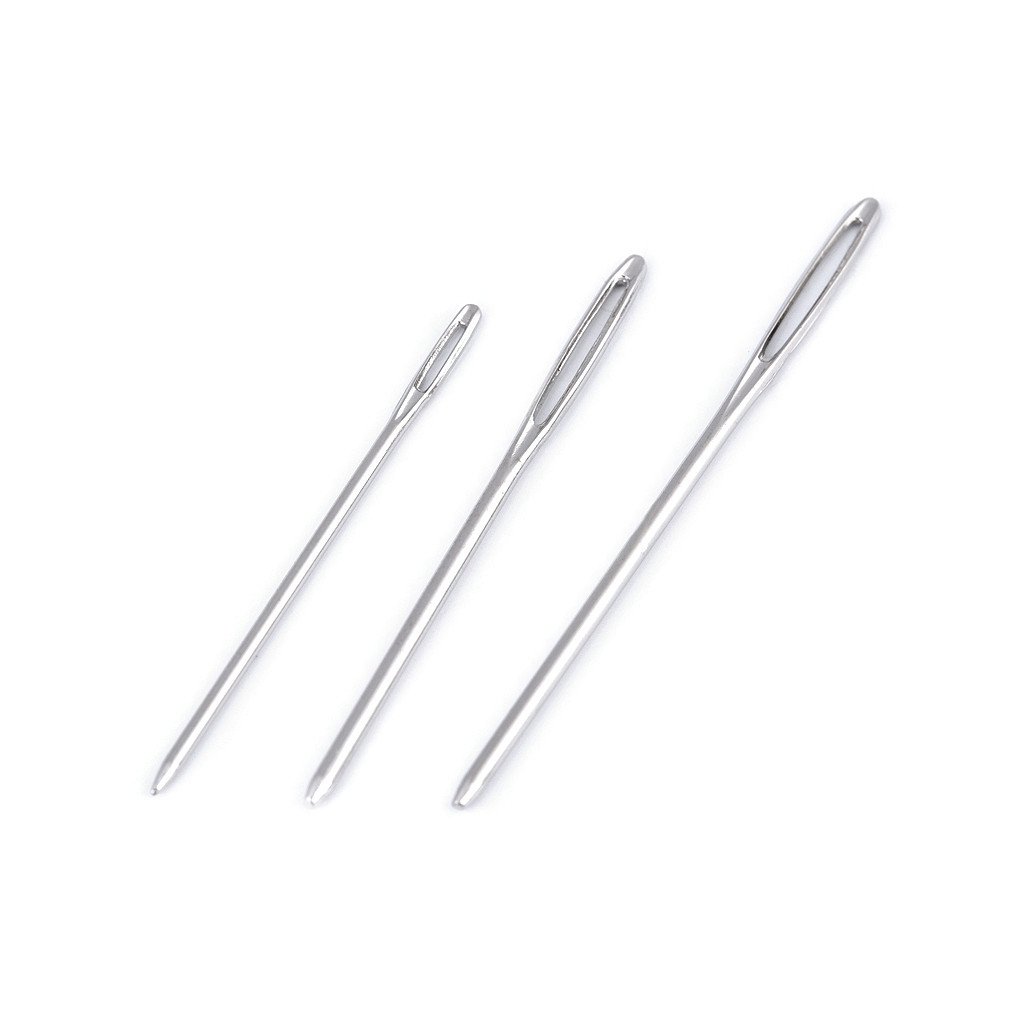 Stumpfe Nadeln eignen sich zum Nähen von Kunstleder, Leder und anderen festeren Stoffen, die stärkere Kordeln oder dickeres Garn erfordern. Sie können auch zum Nähen von Strickwaren, Stickereien und zur Herstellung von Wandteppichen verwendet werden. Da sie nicht scharf sind, muss der Stoff vorher durchstochen werden. Ohrmaße: - Nr. 1: 2,3 x 7,5 mm - Nr. 2: 3 x 16 mm - Nr. 3: 3 x 16,7 mm