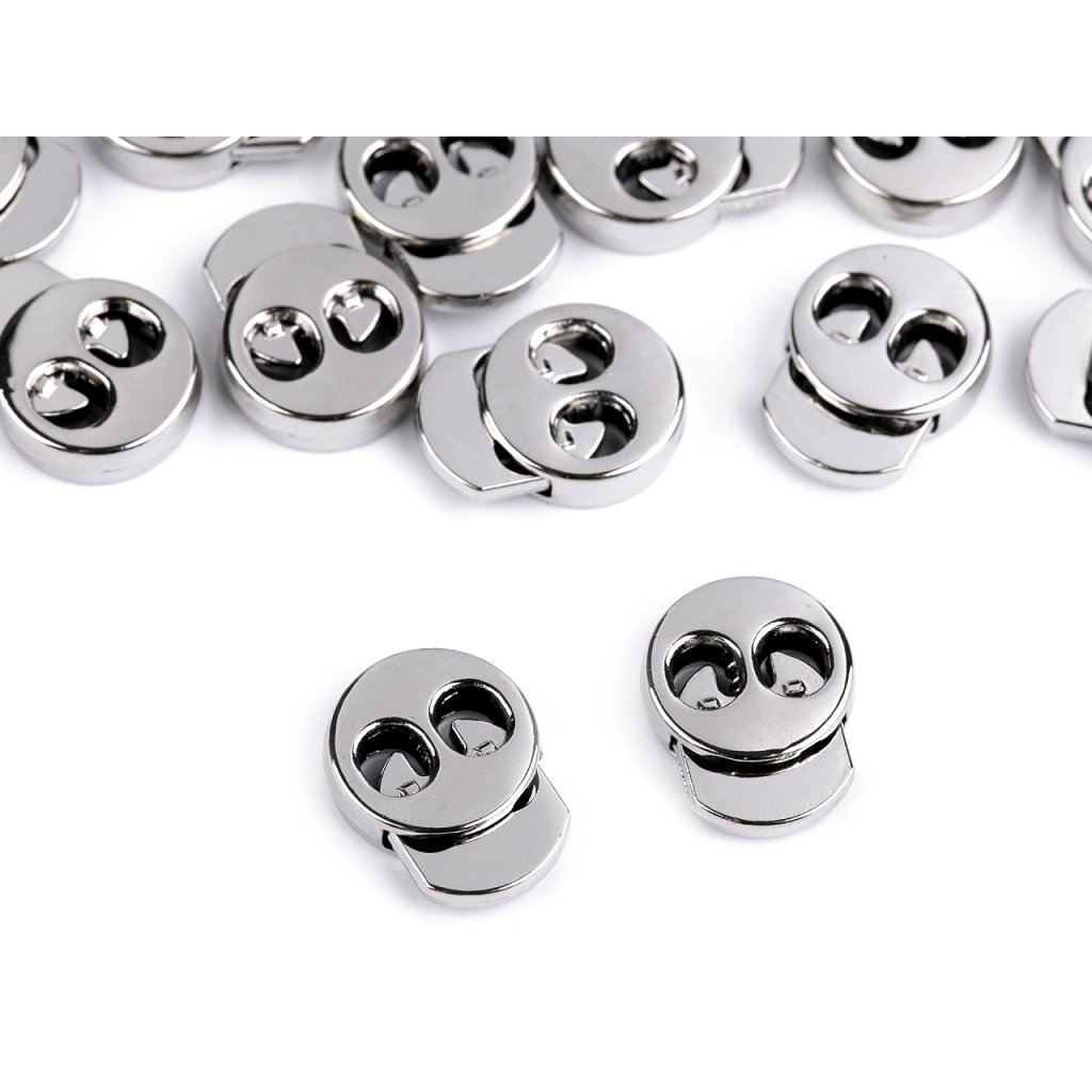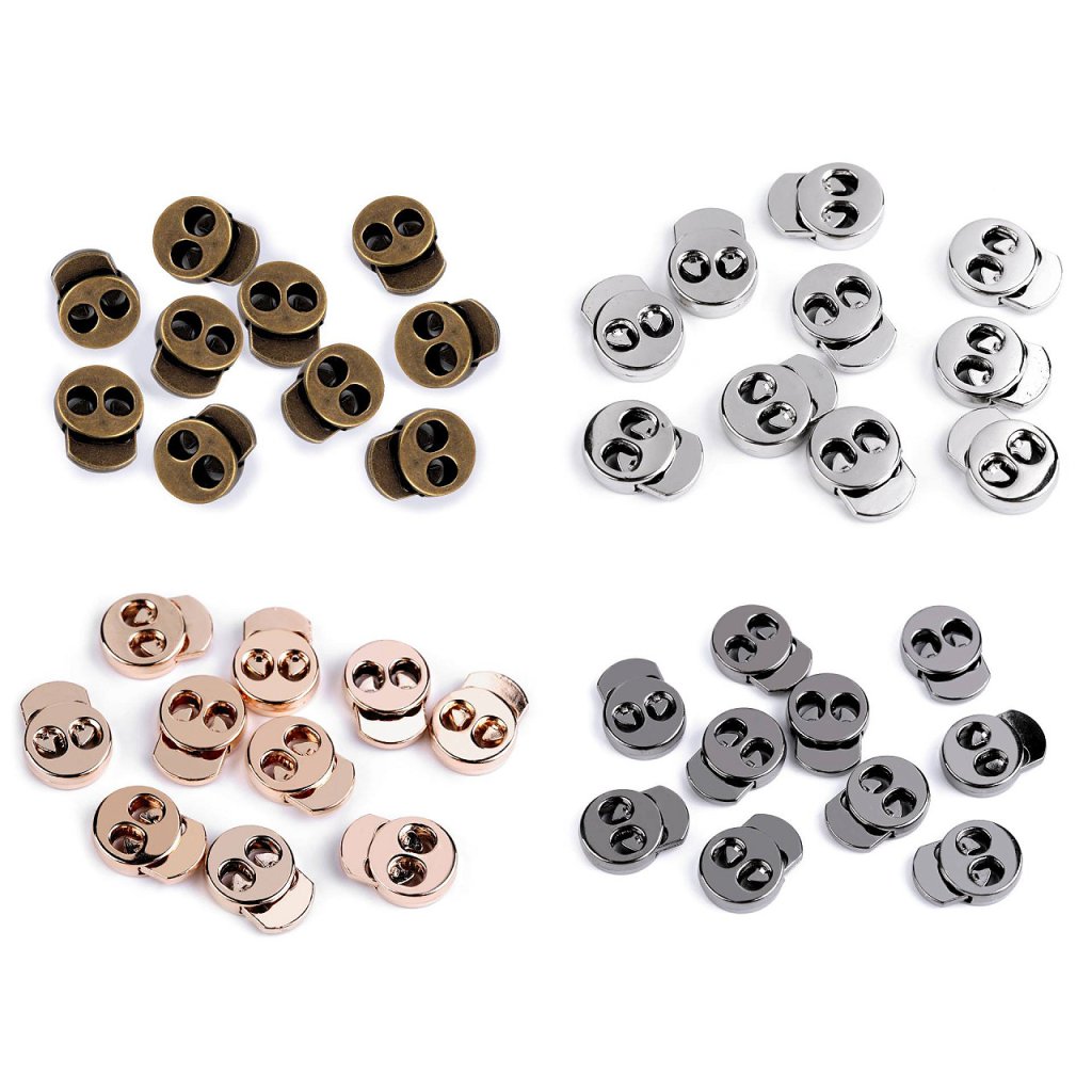 Kordelstopper aus Metall werden als Teil von Kleidung und Jacken verwendet, dank ihnen können Sie die Kapuze festziehen, die Länge des unteren Saums der Sportjacke anpassen usw. Sie können sie auch als Verschluss für Rucksäcke und Taschen verwenden. Im Inneren des Stoppers befindet sich eine Feder, die für festen Halt sorgt . Wenn Sie auf den vorstehenden Stift drücken, können Sie die Bremse bewegen .