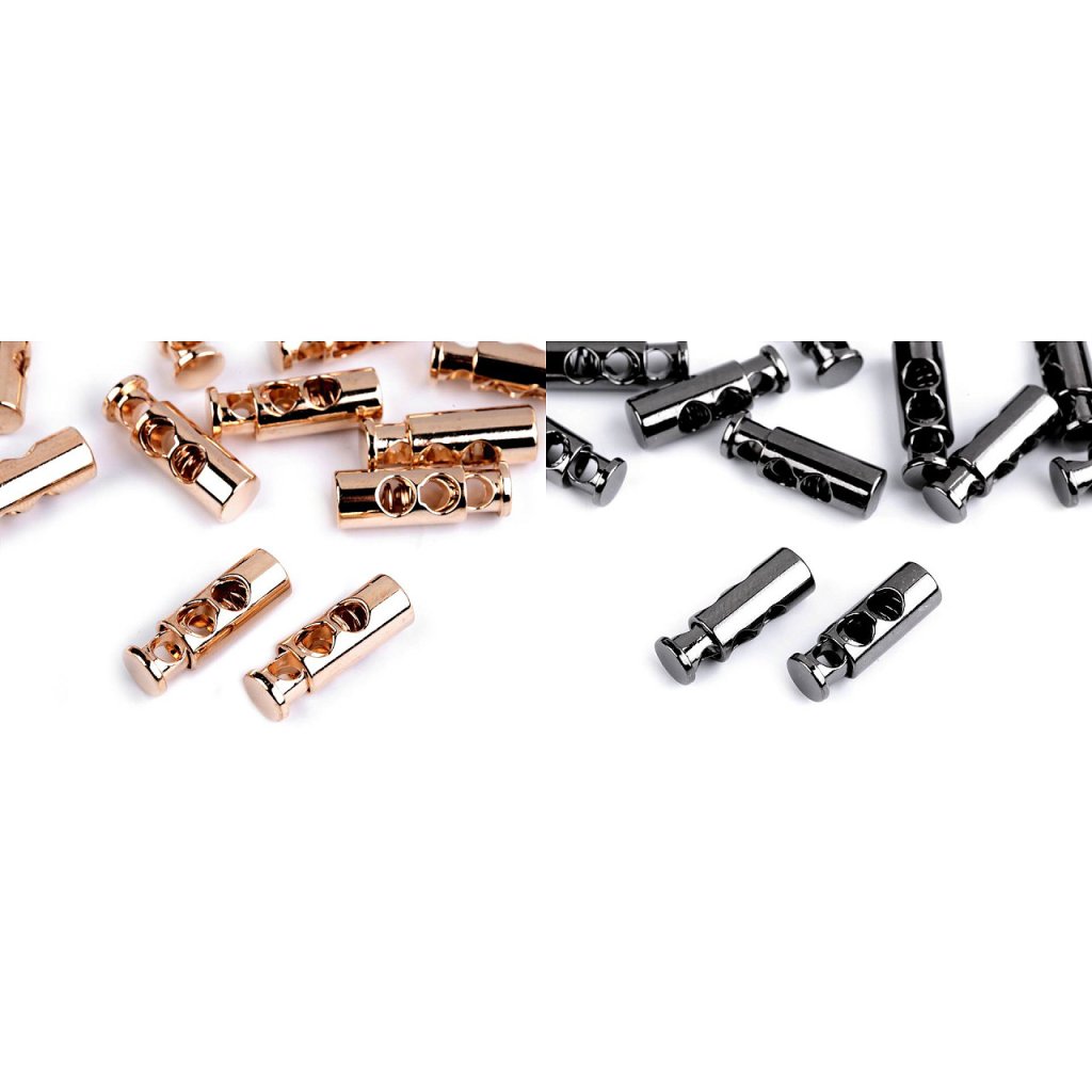 Kordelstopper aus Metall werden als Teil von Kleidung und Jacken verwendet, dank ihnen können Sie die Kapuze festziehen, die Länge des unteren Saums der Sportjacke anpassen usw. Sie können sie auch für Rucksäcke und Taschen verwenden. Im Inneren des Stoppers befindet sich eine Feder, die für festen Halt sorgt . Wenn Sie auf den vorstehenden Stift drücken, können Sie die Bremse bewegen .