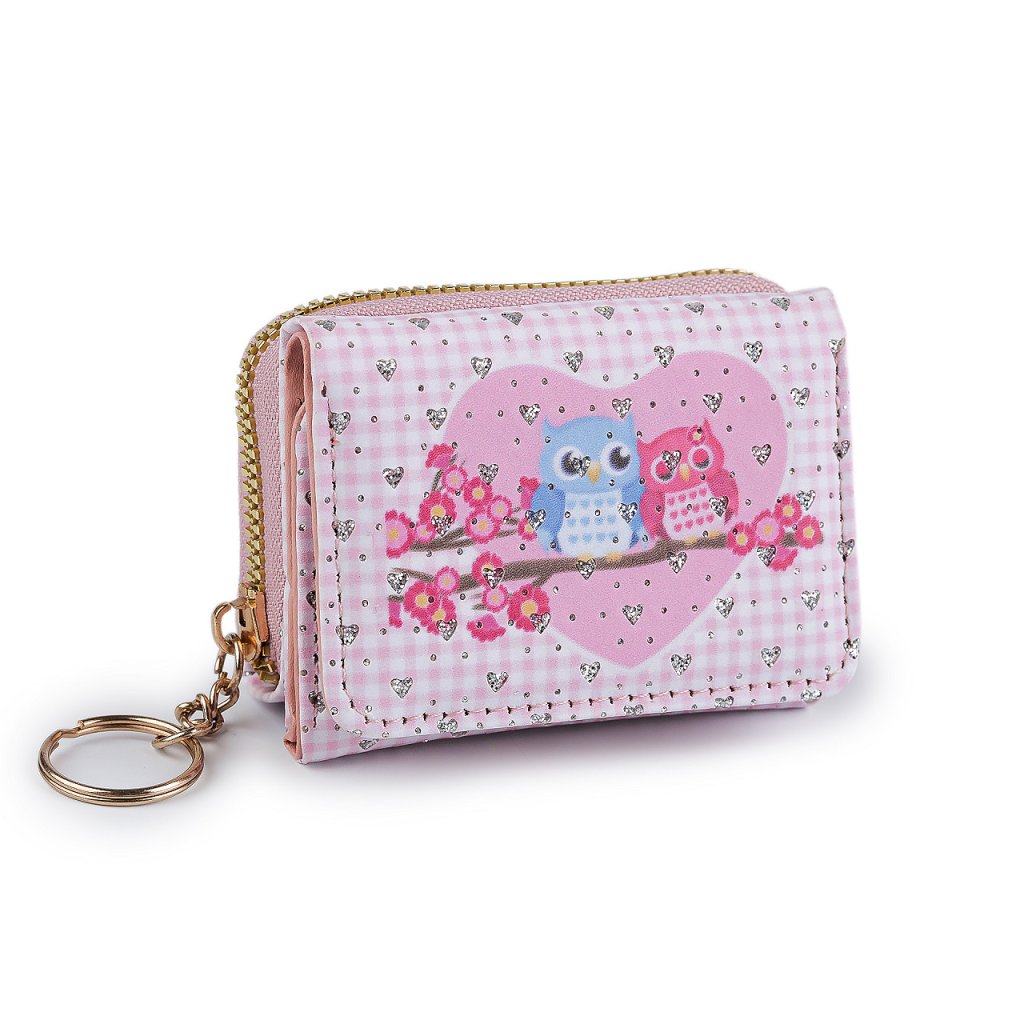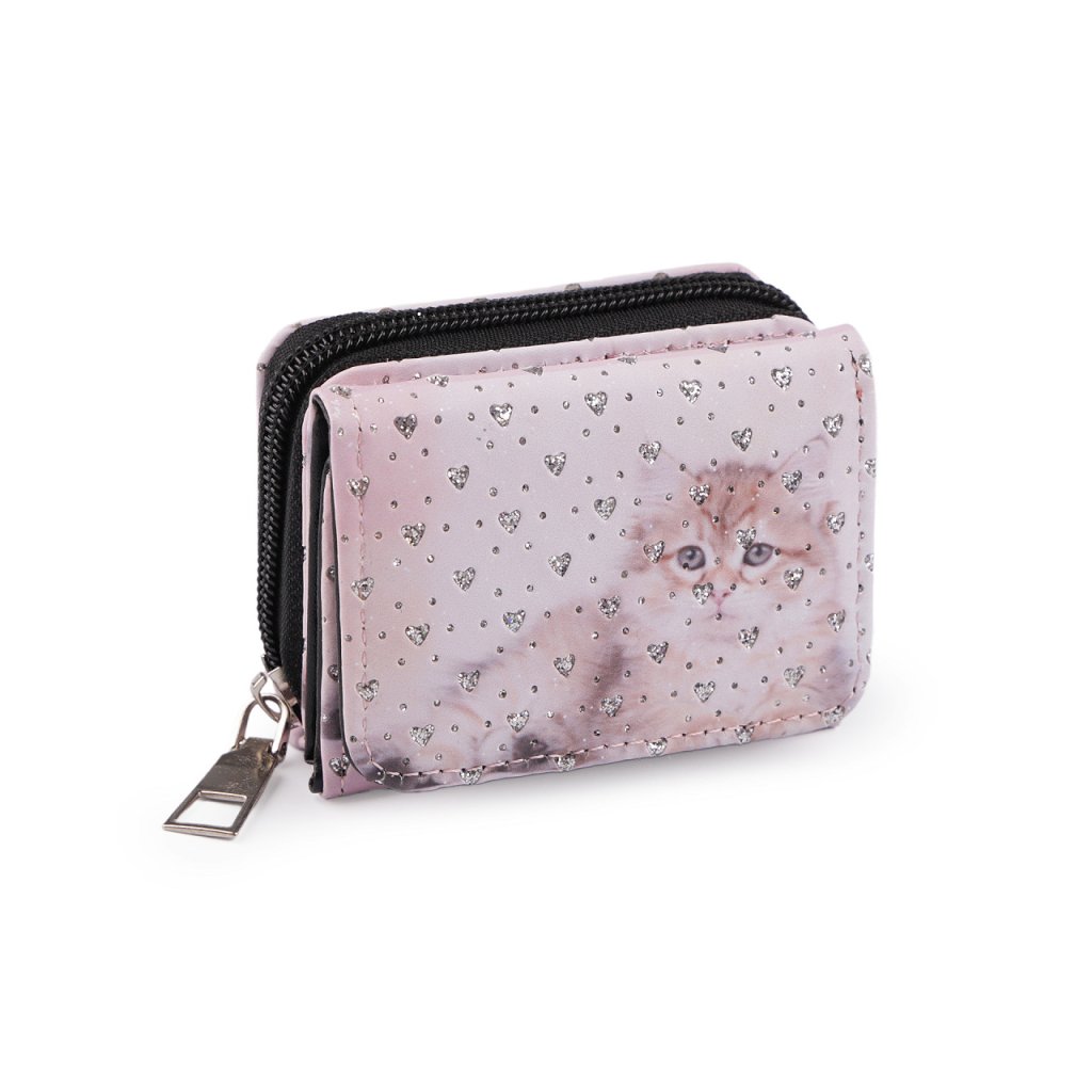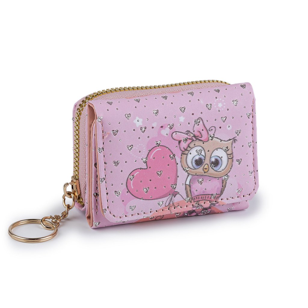 Das bedruckte Mini-Portemonnaie hat eine Vorderseite mit Magnetverschluss. Die Motive werden vor allem Mädchen begeistern. Im Inneren befindet sich ein Fach für Banknoten. Das Münzfach befindet sich auf der anderen Seite des Portemonnaies und wird mit einem Reißverschluss verschlossen. Es ist durch eine Trennwand in zwei Fächer unterteilt. Einige Geldbörsen (mit kleinen Herzen auf der Oberfläche) glitzern.