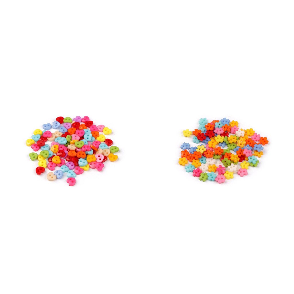 Aufgrund ihrer Größe eignen sich bunte Miniaturknöpfe als dekoratives Element verschiedener Dekofiguren, Puppen, aber auch Kleidung. Sie können sie auch für Scrapbooking verwenden.