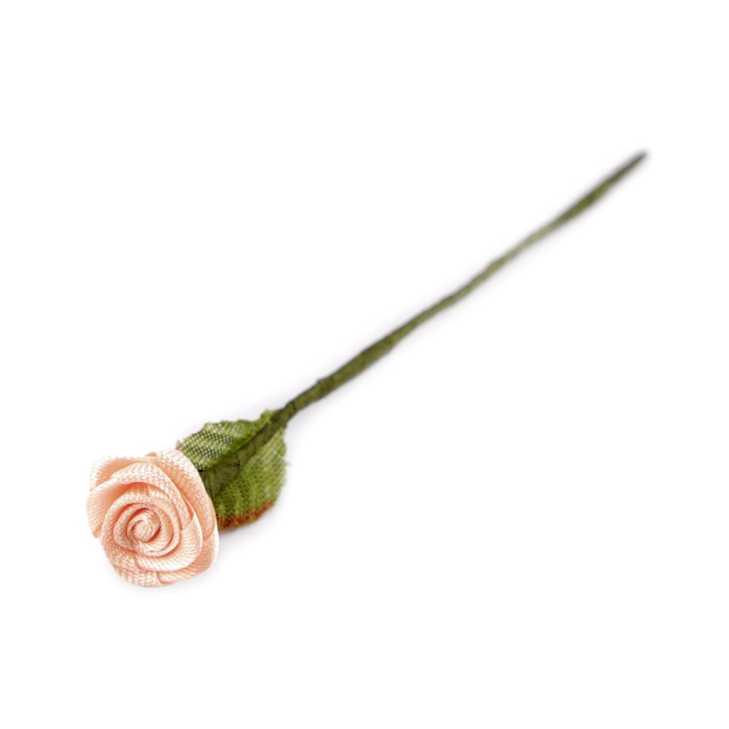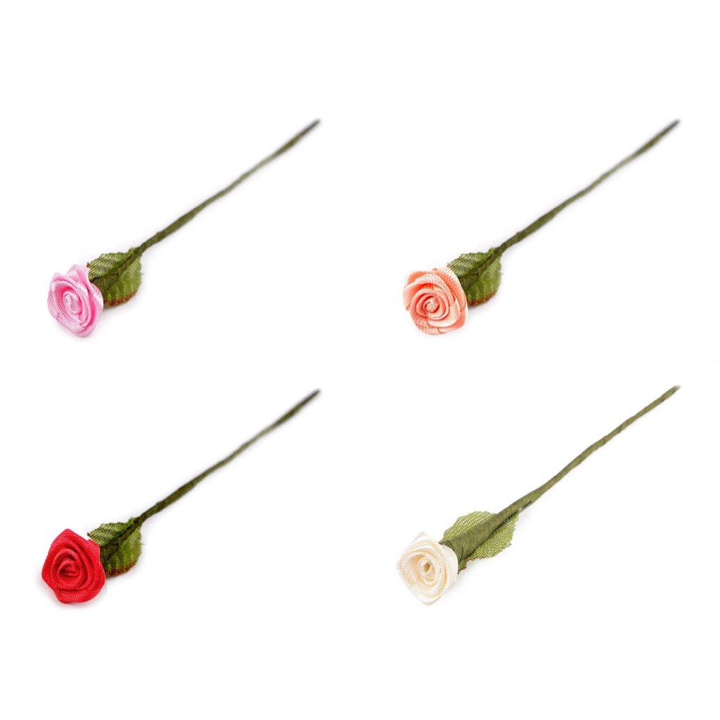 Textile Minirosen eignen sich hervorragend zum Anfertigen von Hochzeitsdüften, aber auch zum Verzieren von Kränzen und Haarbändern. Sie können sie außerdem in kleine Blumenarrangements und Gestecke einarbeiten. Die Rosen sind auf einem mit Floristikband umwickelten Draht befestigt und können so ganz einfach gebogen und geformt werden.