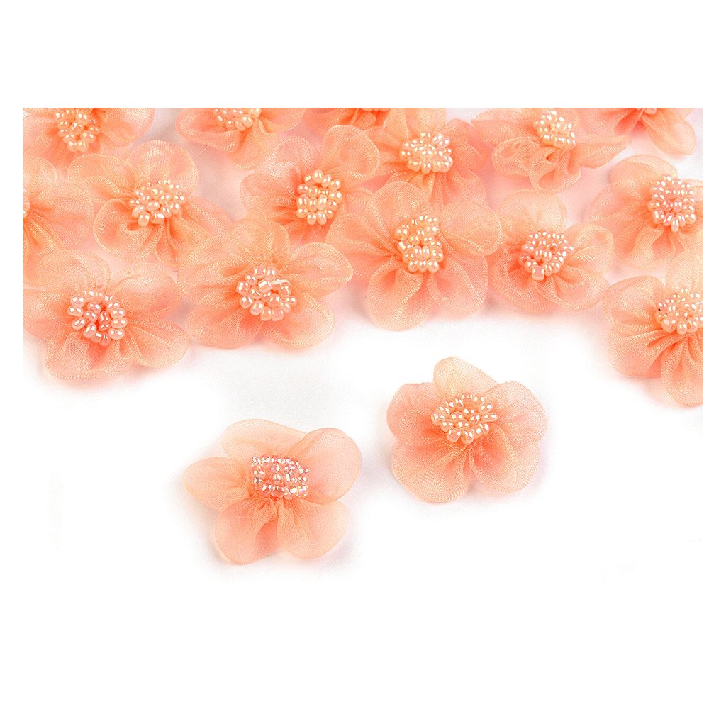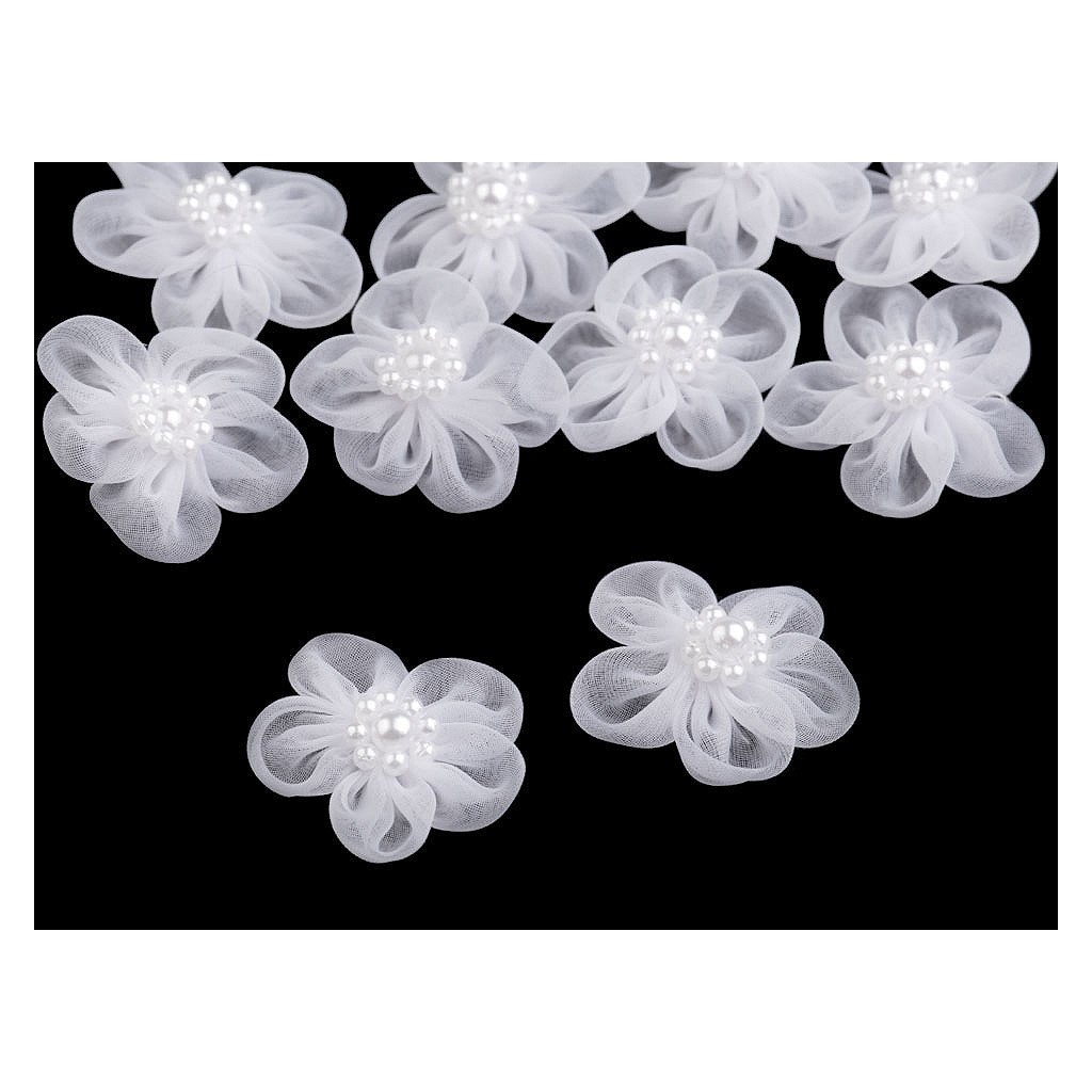 Zarte Organza-Blüte ist sehr romantisch. In ihrer Mitte sind kleine Glasperlen mit Perlmutt-Glanz angenäht. Die Glasperlen können unterschiedlich sein - glänzen mehr oder weniger usw.