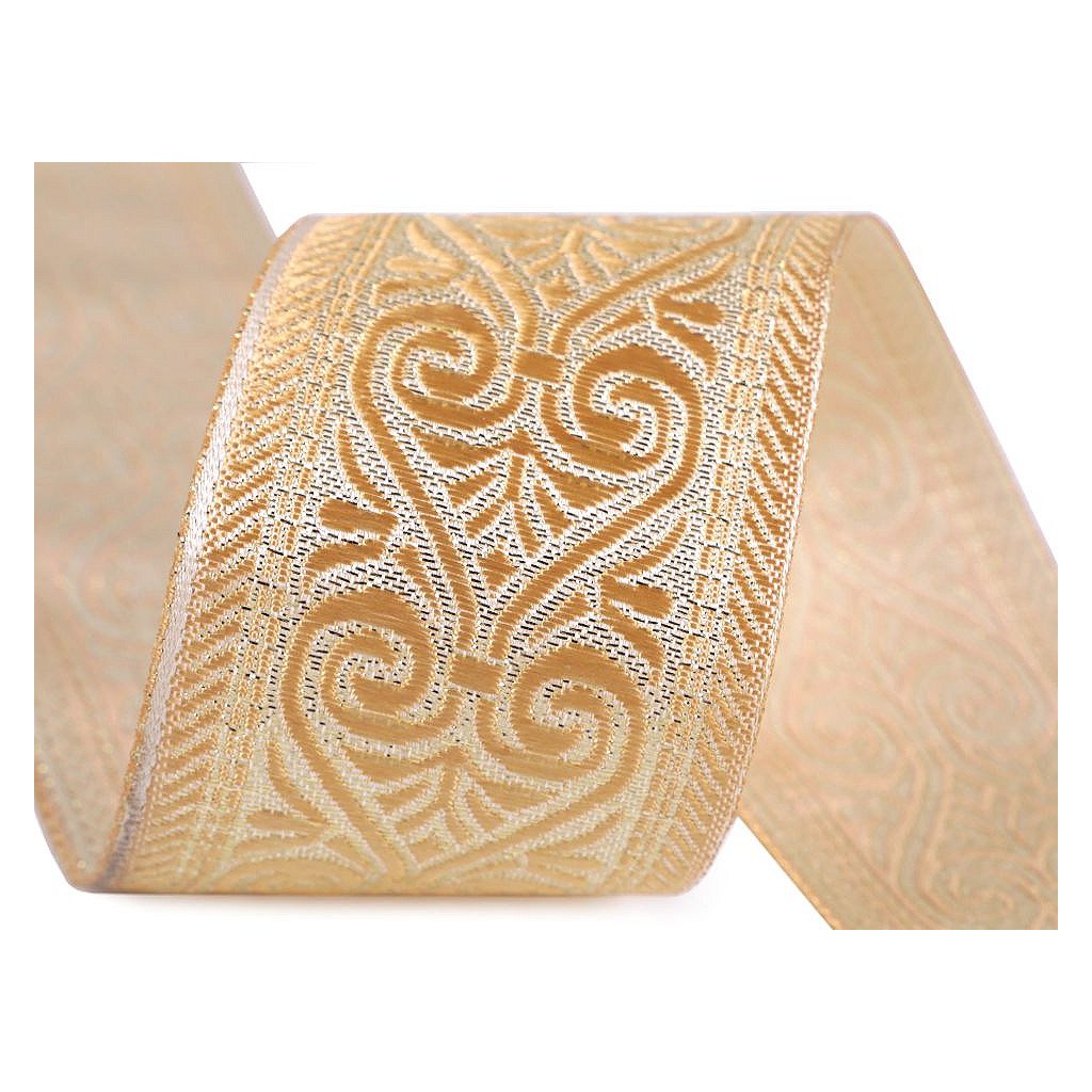 Mutserborte wirkt dank dem originellen Motiv aus Lurex elegant. Geeignet zum Verzieren von Bekleidung, Trachten oder Haustextilien. Auch zum Annähen an Tischdecken, Taschen, Kissen, Mänter oder Decken ideal.