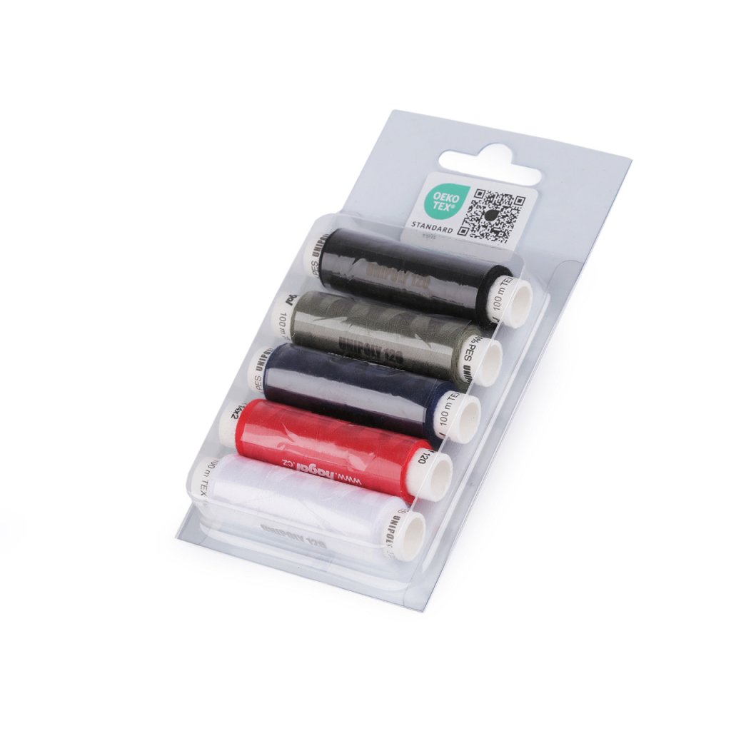 Universal- Polyestergarne eignen sich sowohl zum Nähen mit der Hand als auch mit der Maschine. Sie können damit Strickwaren, Unterwäsche, Blusen, Hemden, Heimtextilien, Tischwäsche, Handtücher und Babyartikel nähen. Sie sind hochwertig, robust und farbecht.