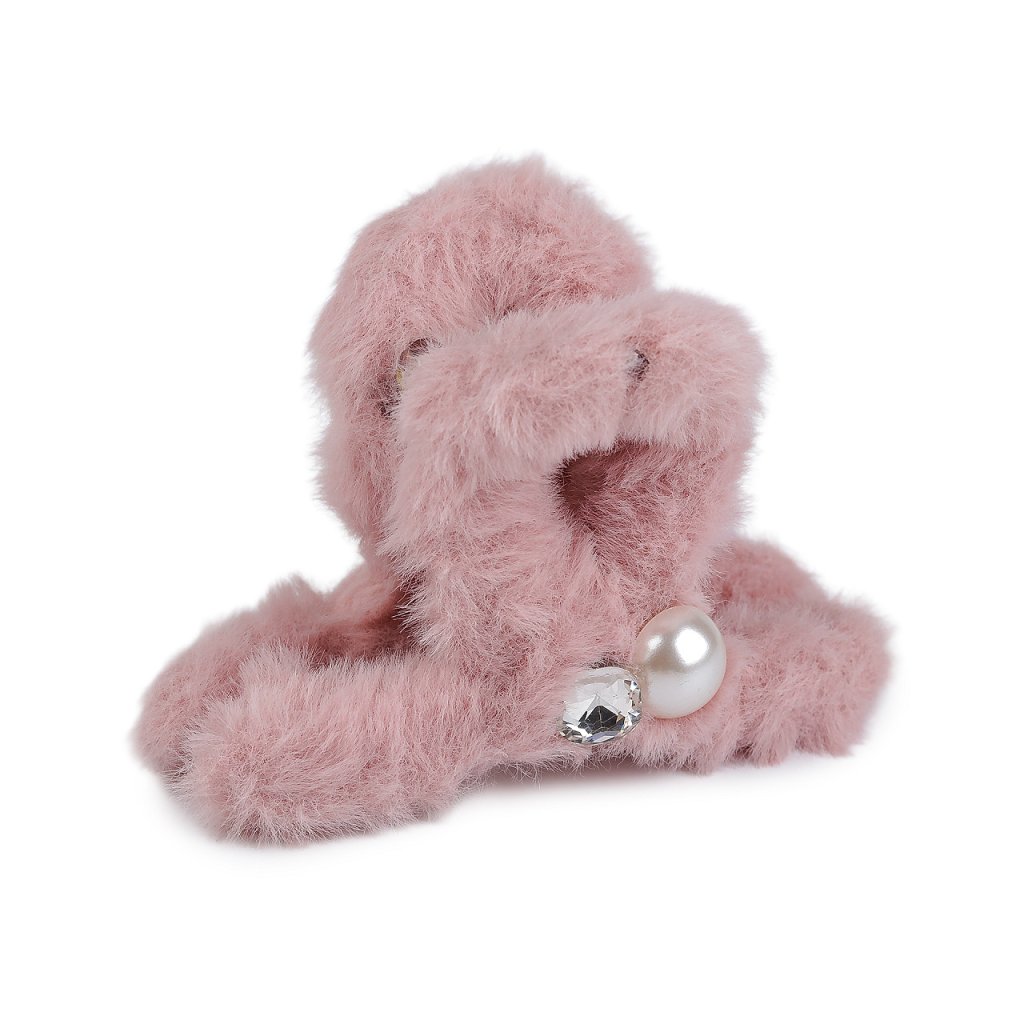 Pelz-Haarklammer mit Perle und geschliffenem Stein