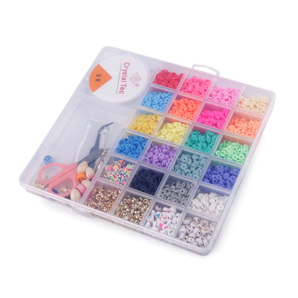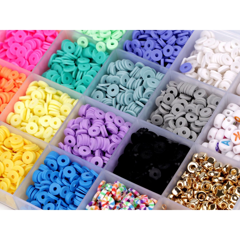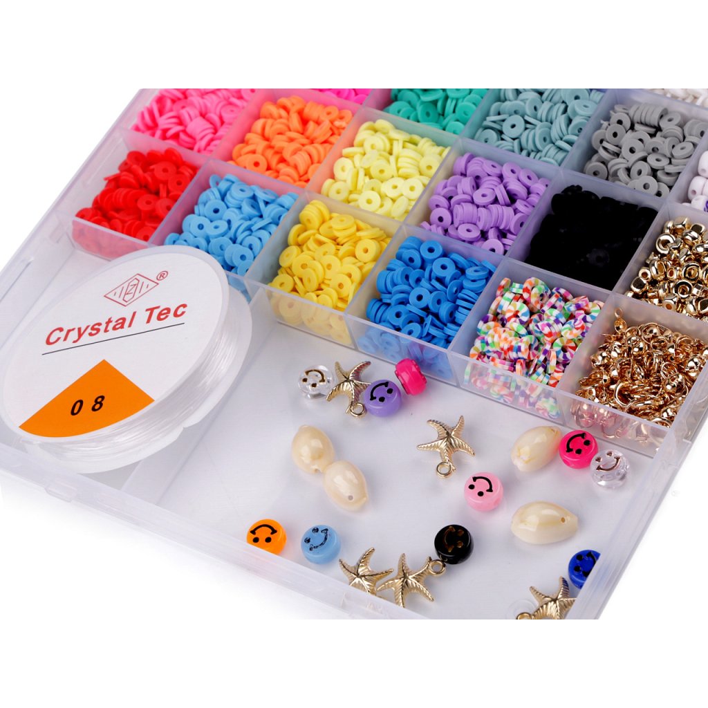 Ein Set aus Silikonpatties und Kunststoffperlen in einer Schachtel wird kleine und große Perlen begeistern. Sie eignen sich hervorragend für die Herstellung von Armbändern und Halsketten, da die Schachtel auch winzige Anhänger der beliebten Muscheln, Seesterne und Smiley-Perlen enthält. Perlen mit Buchstaben und Herzen werden Sie sicherlich begeistern. Die Box ist in 24 Fächer mit Perlen und zwei größere Fächer mit Werkzeugen, Silikongummis und Anhängern unterteilt. 20 Fächer enthalten Silikonpatties in verschiedenen Farben. 2 Fächer enthalten Buchstabenperlen. 1 Fach enthält eine Mischung aus metallischen Sternen, Rädern und Würfeln. 1 Fach enthält Schmuckkomponenten - Karabiner, Kappen und Verbindungsringe. Kleine Schere und Pinzette finden ebenfalls im Anhängerfach Platz. Das letzte Fach hat ein rundes Silikongummiband.