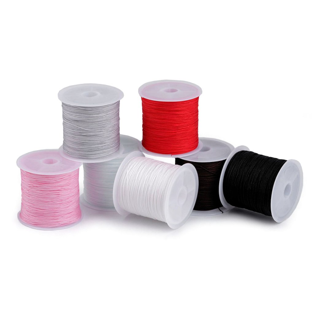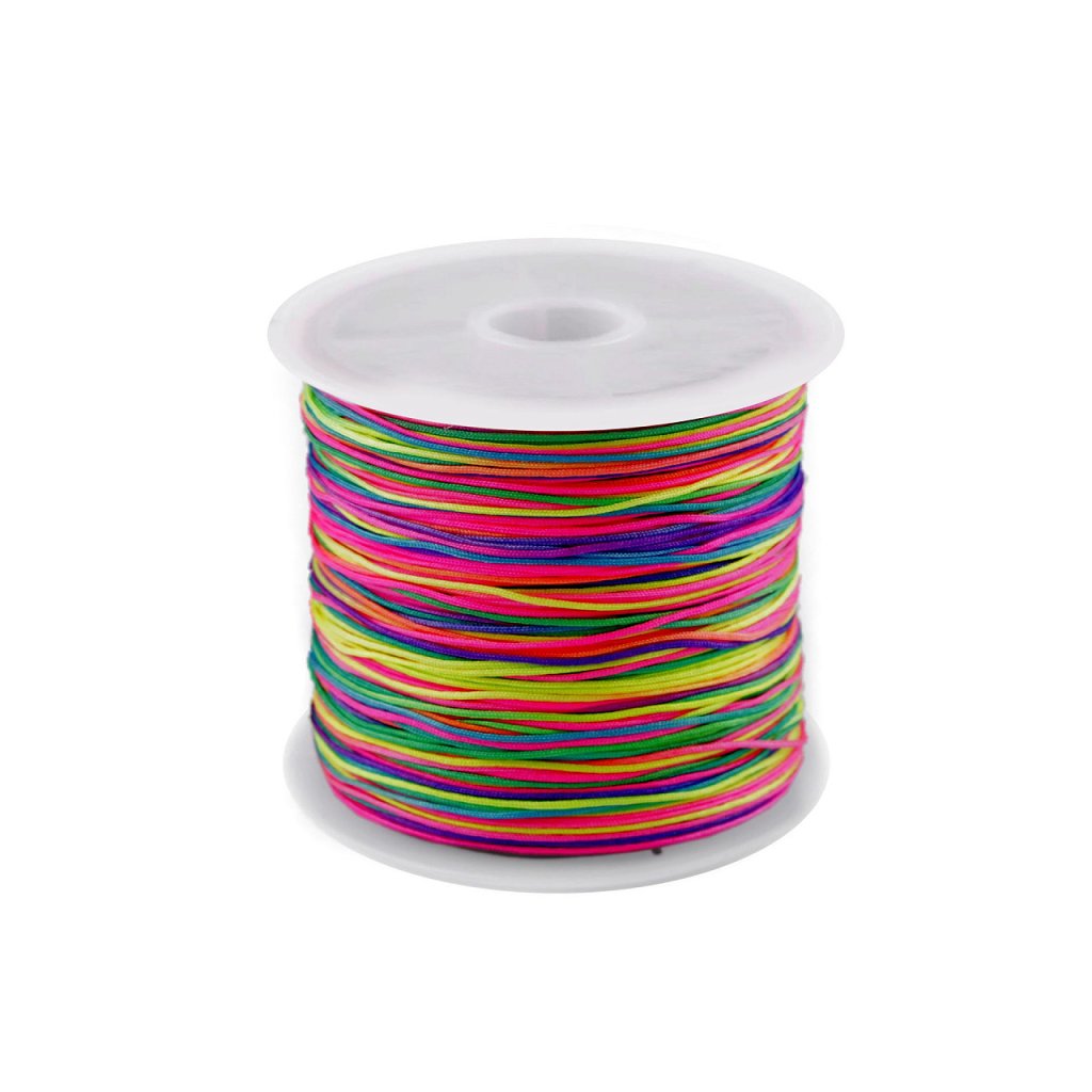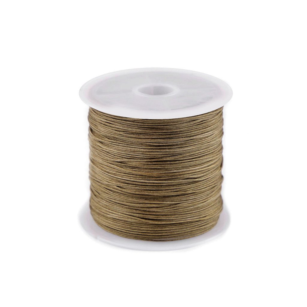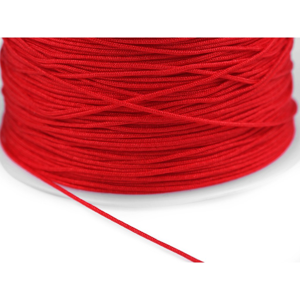 Die Polyesterschnur ist rund, sehr stark . Damit erzielen Sie präzise Ergebnisse. Seine Enden halten gut, sie fransen nicht aus, man kann sie sogar über einer Flamme versiegeln. Verwendung: Die Kordel eignet sich zur Herstellung von Armbändern oder Halsketten in der Makramee-Technik. Perfekt für Shamballa-Armbänder. Sie können es auch als Ärmelmaterial verwenden. Sie können es auch für die Scrapbooking-Technik verwenden - um verschiedene Schilder und Anhänger aufzuhängen.