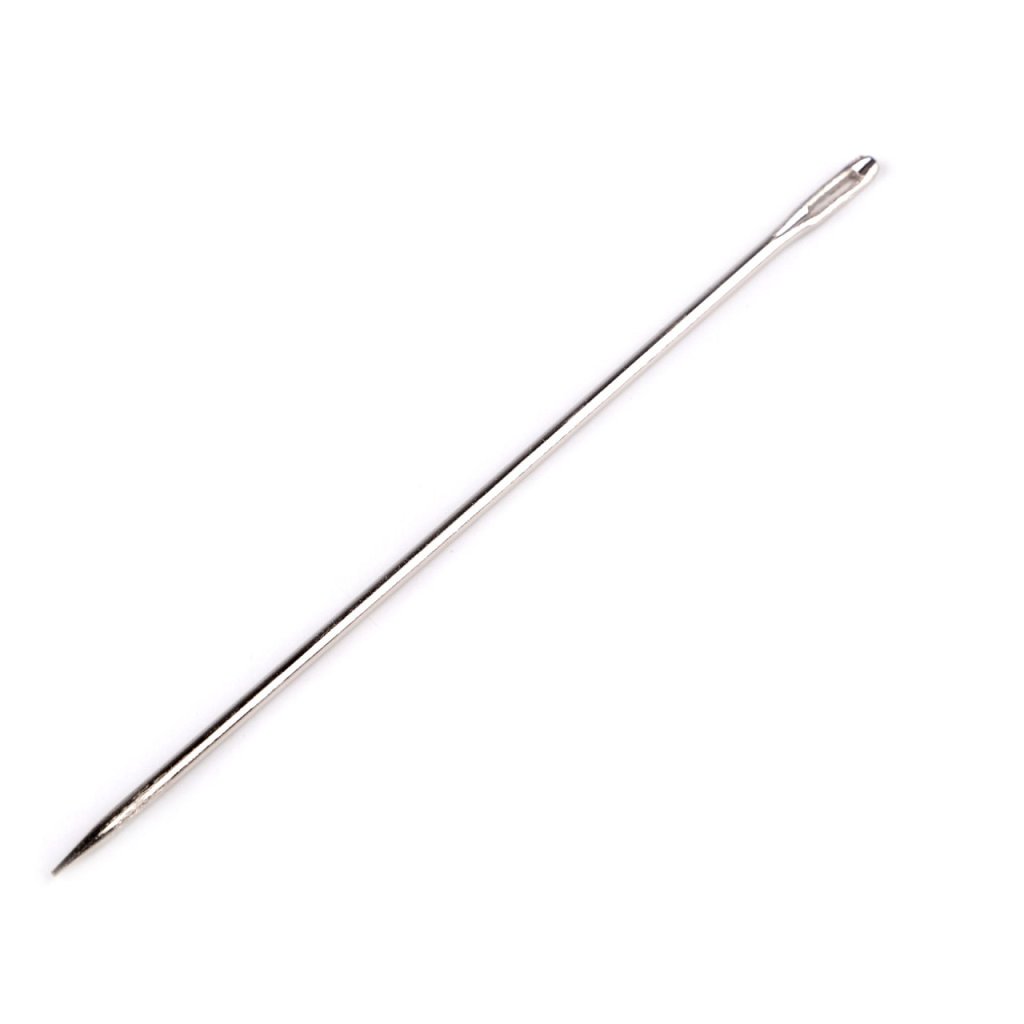 Eine lange Polsternadel hat ein großes Öhr und eine stumpfe Spitze. Sie wird zum Nähen dicker Stoffe und Taschen verwendet. Die Maße des Ohrrings betragen ca. 1,3 x 9 mm.