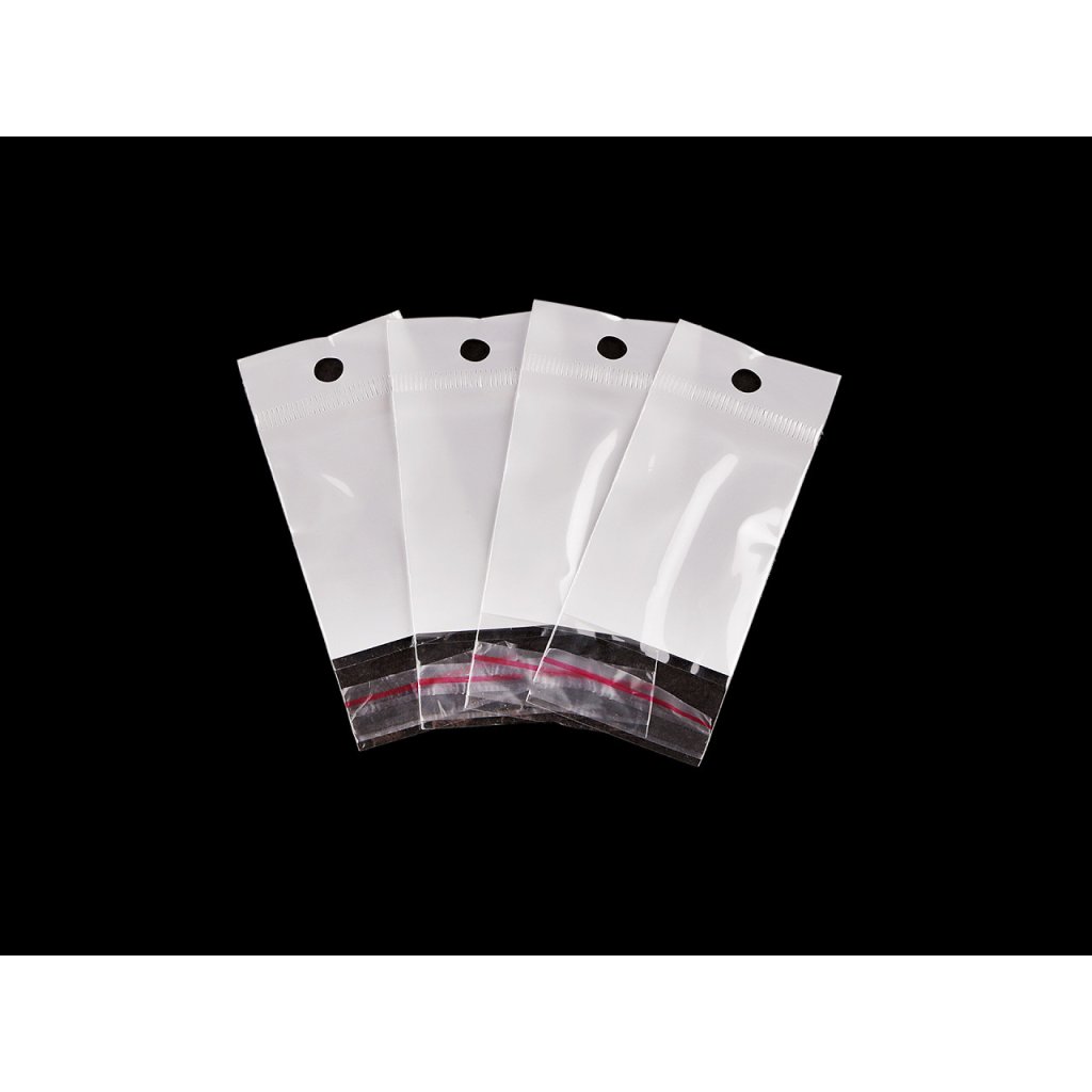 PP-Beute mit Klebestreifen und Aufhängerloch, 4 x 6 cm, eine Seite Transparent