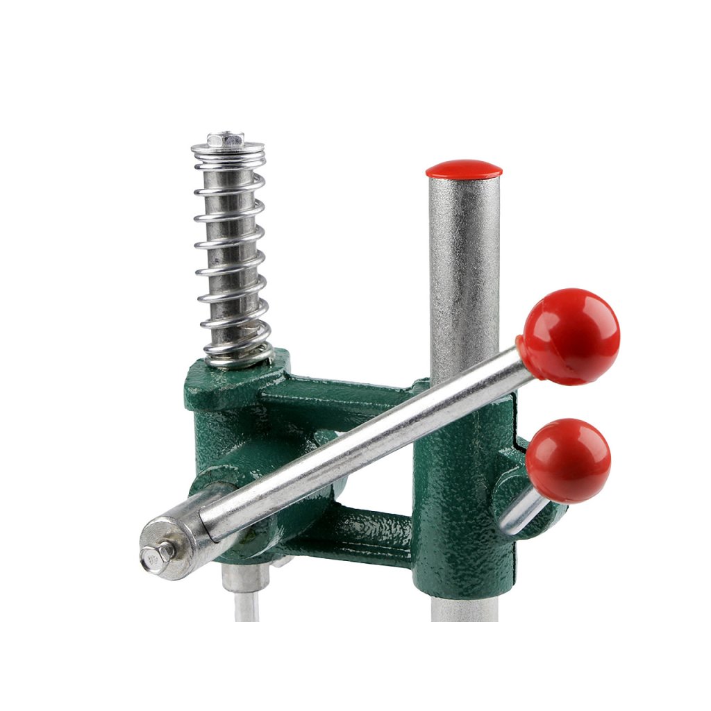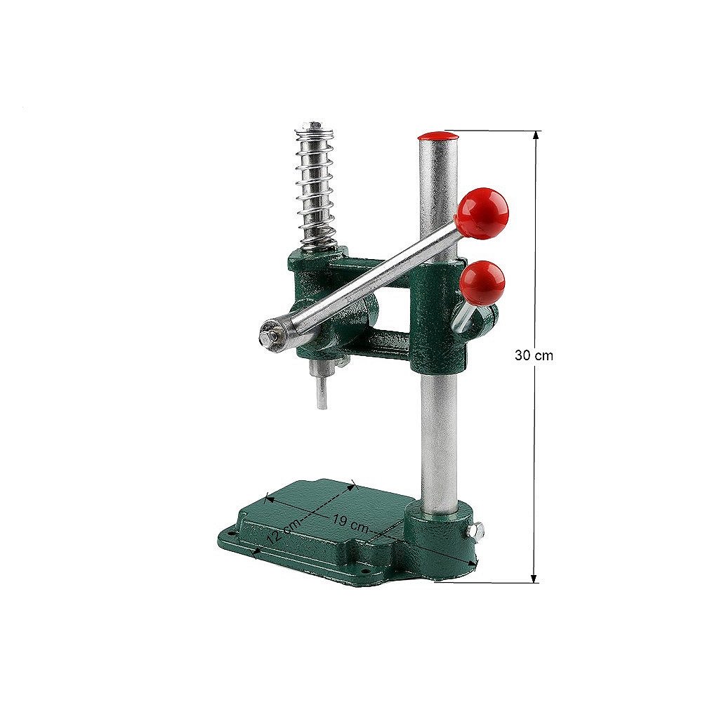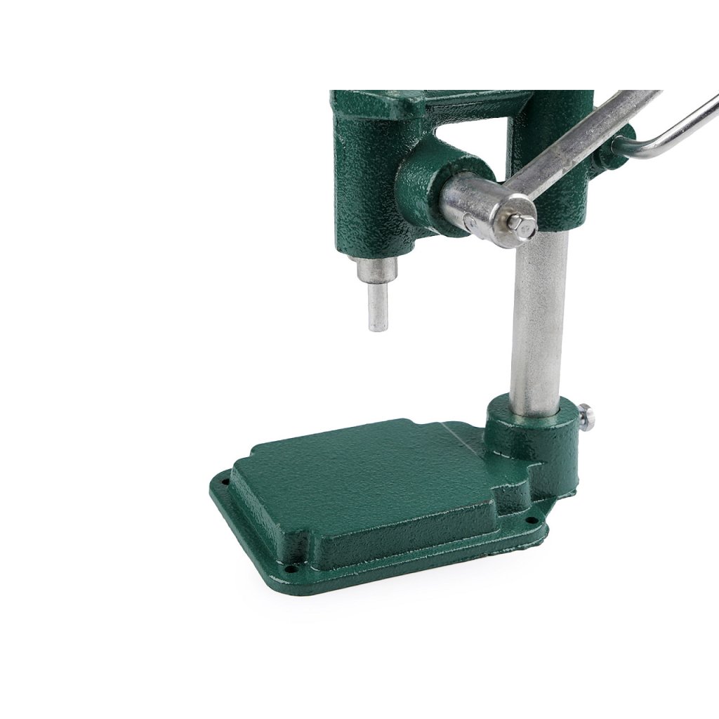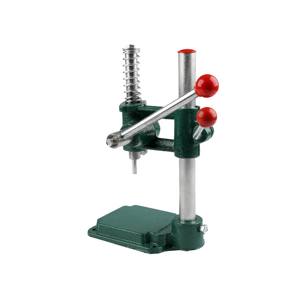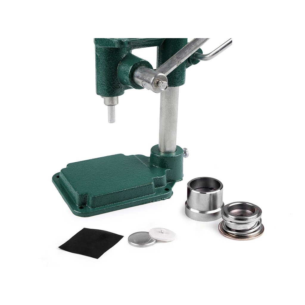 Diese Presse macht keine Löcher. Zum Pressen müssen Sie auch diverse Werkzeuge und Beschichtungen 090859 und Selbstabdeckknöpfe 730363, 740076, 090861 kaufen oder hier eine andere Größe auswählen Die Presse sollte auf einer festen Oberfläche verschraubt werden. Ziehen Sie den Griff in Ihre Richtung. Verfahren: 1 Schneiden Sie ein Quadrat oder einen Kreis aus geeignetem Stoff etwas größer als der Streifen. Auf den Kolben Teil A eine Platte und Stoff legen, auf den Teil B den Plastikknopf stecken. 2 Beide Teile zusammenklappen und unter die Presse legen, so dass Teil A oben liegt. 3 Hebel wird zusammengezogen und drückt die beiden Teile zusammen. 4 Trennen Sie die beiden Kolbenteile auseinander und entfernen Sie den Knopf.
