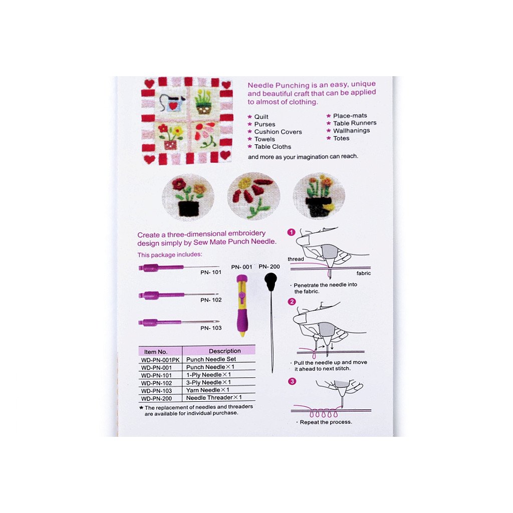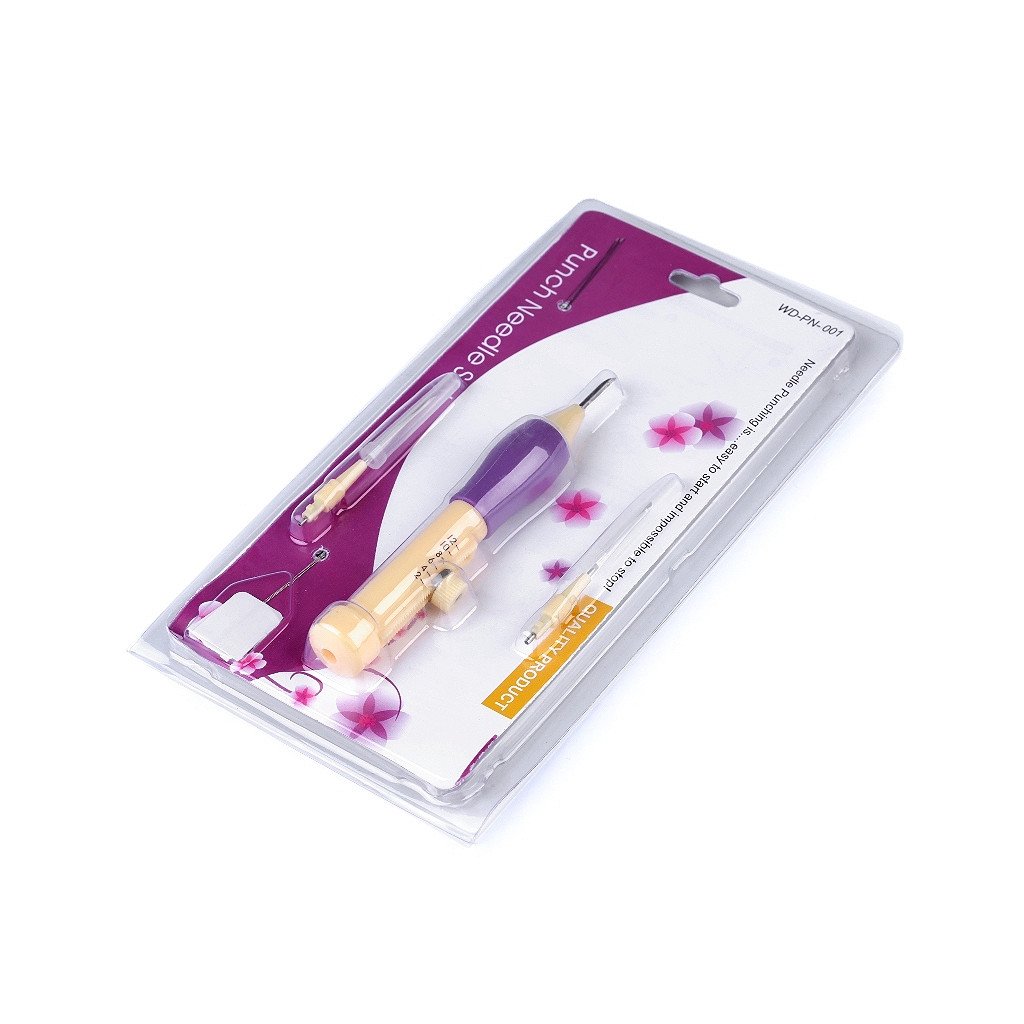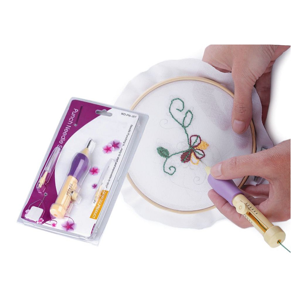 Sticken mit einer Hohlnadel ist einfach und schnell. Die Nadel wird nur in den Stoff eingestochen, nicht durchgefädelt. Beim Sticken sollte sie senkrecht zum Stoff stehen. Der zu bestickende Baumwollfaden wird mit einem langen Nadeleinfädler eingefädelt. Man stickt, indem man den Stoff durchsticht und die Nadel knapp über dem Stoff wieder herauszieht, die Spitze leicht in Stickrichtung bewegt und den Vorgang wiederholt. Achten Sie darauf, nicht zu stark am Garn zu ziehen, da die Stiche sonst ausfransen. Solange das gesamte Motiv nicht beispielsweise mit einem Überzug auf der Rückseite fixiert ist, löst es sich vollständig auf, da es von der Rückseite nicht fixiert wird. Diese Technik eignet sich für Bilder, die auf die Rückseite geklebt und eventuell hinter Glas gerahmt werden. Wenn Sie beispielsweise Kleidung besticken möchten, ist eine klassische Nadel besser geeignet. Eine detaillierte Bildanleitung befindet sich in der Verpackung. Das Set beinhaltet: eine Hohlnadel mit Ø2 mm, 2 Nadeln mit Ø1,6 und 1,3 mm, 2 lange Nadeleinfädler.