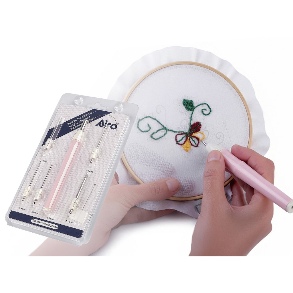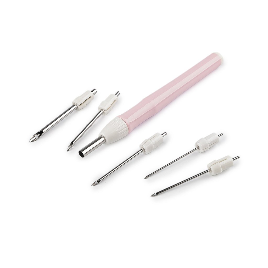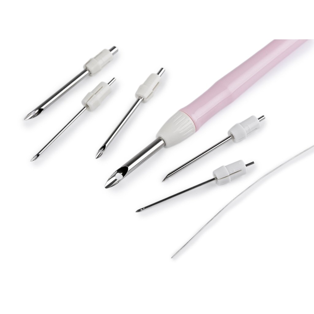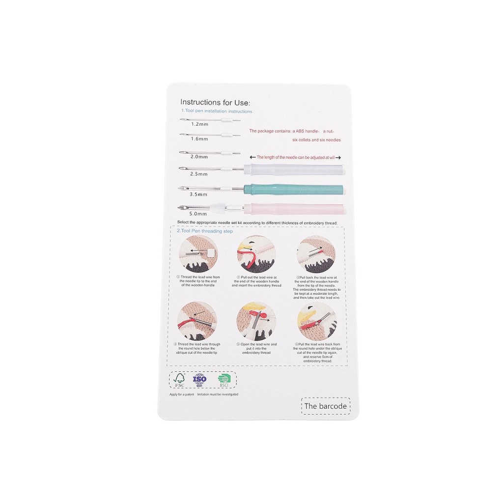 Das Sticken mit einer Hohlnadel ist einfach und schnell. Die Nadel wird nur in den Stoff eingestochen, nicht durchgefädelt . Beim Sticken sollte sie senkrecht zum Stoff stehen. Der zu bestickende Baumwollfaden wird mit einem langen Nadeleinfädler eingefädelt. Zum Sticken sticht man in den Stoff und zieht die Nadel knapp über dem Stoff wieder heraus. Dann bewegt man die Nadelspitze ein wenig in Stickrichtung und wiederholt den Vorgang. Man sollte nicht zu stark am Faden ziehen, da die Stiche sonst reißen. Sofern das gesamte Motiv nicht von der Rückseite verklebt ist, beispielsweise mit einem Vlieseline, kann es sich komplett lösen; es ist nicht fixiert. Diese Technik eignet sich für Bilder, die auf die Rückseite geklebt und unter Glas in einem Rahmen platziert werden. Wenn Sie beispielsweise Kleidung besticken möchten, ist eine klassische Nadel besser geeignet. Eine detaillierte Bildanleitung finden Sie in der Verpackung. Das Set beinhaltet: eine Hohlnadel mit Ø1,2 mm, Ø1,6 mm, Ø2 mm, Ø2,5 mm, Ø3 mm, Ø5 mm und einen langen Nadeleinfädler.