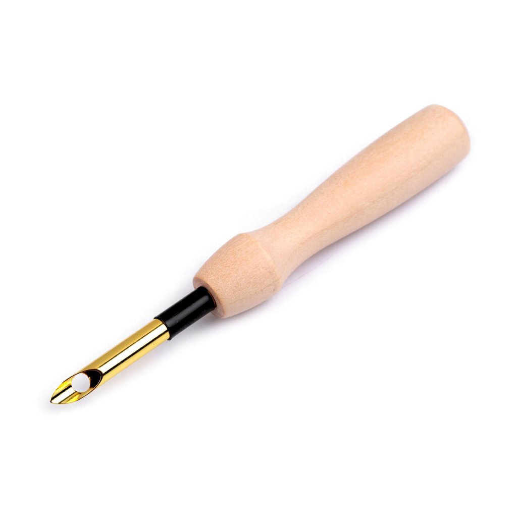 Das Sticken mit einer Hohlnadel geht einfach und schnell. Diese Nadel hat eine stärkere Spitze und eignet sich daher zum Arbeiten mit Strickgarn und zum Verzieren von Pullovern oder anderen Strickwaren. Die Nadel wird nur in das Material eingestochen, nicht durchgefädelt. Beim Sticken sollte es senkrecht zum Stoff sein. Führen Sie die Nadel durch das Garn, mit dem Sie sticken möchten. Zum Sticken wird das Material durchstochen, die Nadel direkt darüber zurückgezogen, die Spitze ein wenig in Stickrichtung bewegt und der Vorgang wiederholt. Versuchen Sie, nicht zu stark am Garn zu ziehen, da sonst die Maschen ausfransen. Solange nicht das gesamte Motiv z. B. mit einem Überzug auf der Rückseite festklebt, kann es auf einmal verdunsten, es wird in keiner Weise von der Rückseite fixiert. Der Nadelgriff besteht aus unlackiertem Holz.