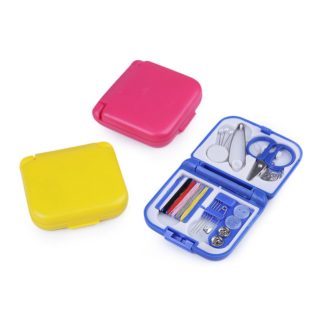 Das Nähset in einer Plastikbox ist ein idealer Reisehelfer. Inhalt festlegen: - 6 Stück farbiger Faden - 3 Nadeln - 3 Stifte (Länge 28 mm) - 2 Tasten, Größe 18 " - 2 Stück Metallbolzen (Ø9 mm) - 1 Stift Sicherheitsnadel - 1 Stück Pinzette - 1 Stück Schere - 1 Thread-Einfädler