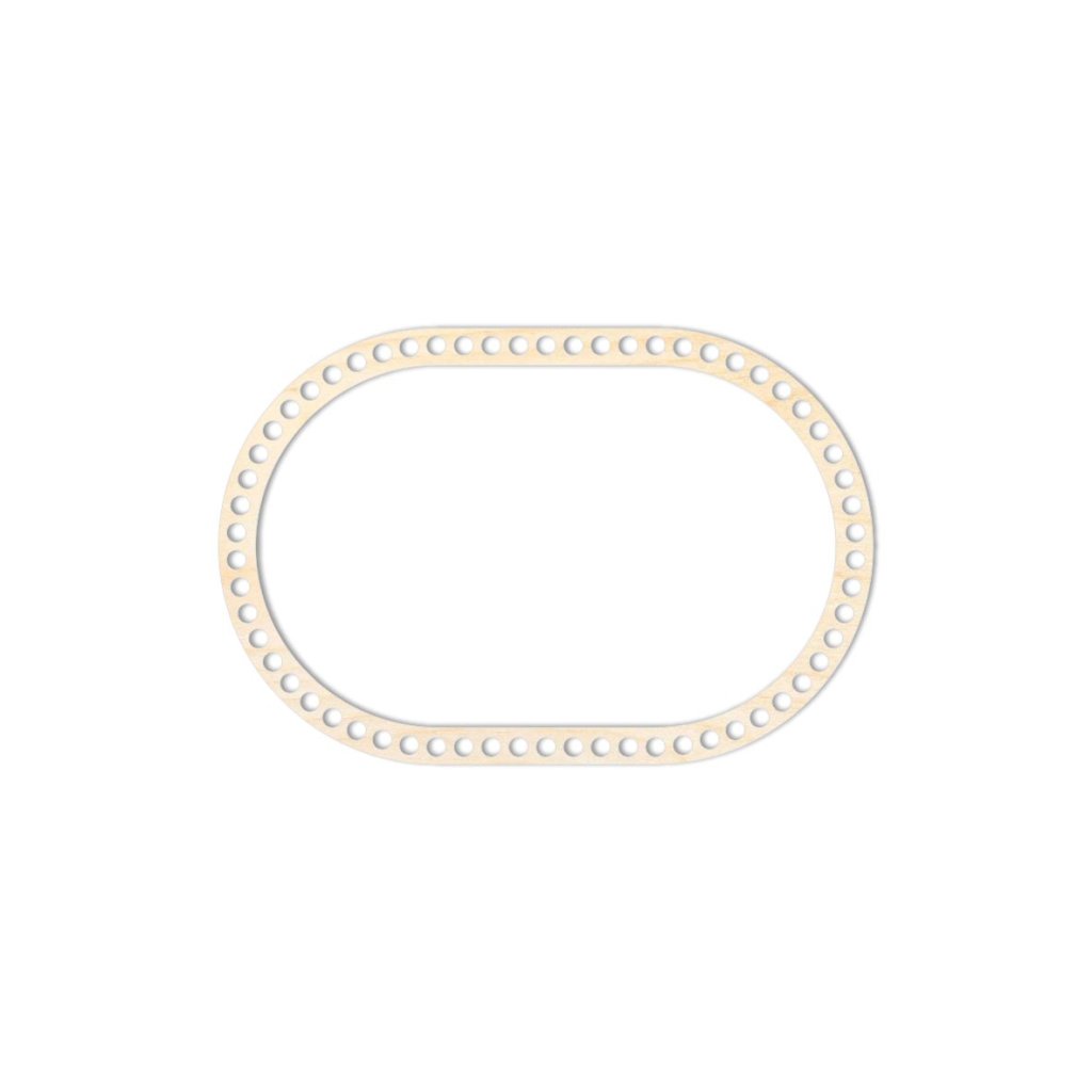 Ovaler Holzboden mit den Maßen 30 x 20 cm aus 3 mm starkem Birken-Sperrholz, geeignet für die Herstellung von Häkelkörben aus Textilgarn oder Kordelgarn.
