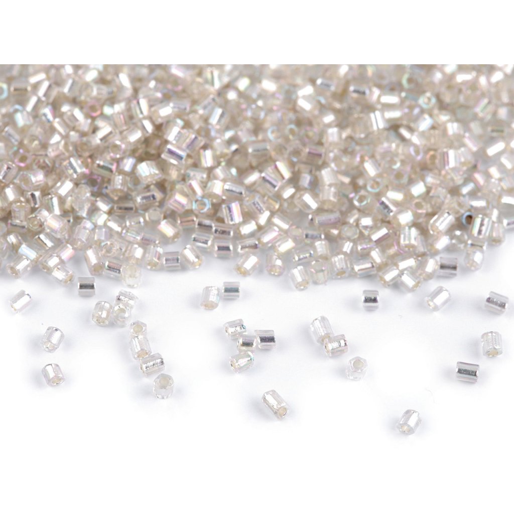 Geschliffene Rocailles-Perlen mit Silberfaden haben einen wunderschönen, spektakulären Glanz . Sie eignen sich zur Herstellung von elegantem Modeschmuck und Weihnachtsdekorationen (Perlenbäume, Weihnachtsschmuck, aufgereihte oder mit Perlen besetzte Halsketten, Armbänder usw.). Sie können sie auch zum Verzieren von Kleidung oder dekorativen Textilien verwenden. Bitte beachten Sie, dass geschnittene Rocailles-Perlen produktionsbedingt scharfe Kanten aufweisen können. Sie sind leicht unregelmäßig und daher nicht für genähten Schmuck geeignet, bei dem höchste Präzision erforderlich ist. Rocaillesperle Nr. H409 – multicolor, ist etwas größer – hat einen Durchmesser von 2 mm. Sie hat keinen Silberaufhänger.