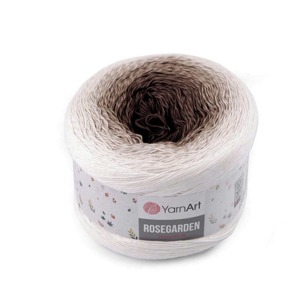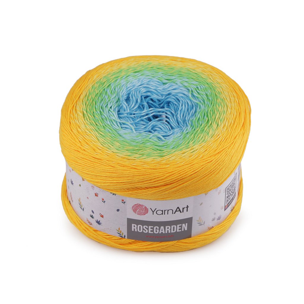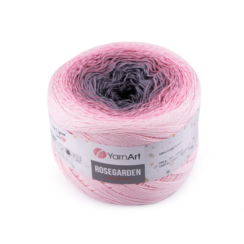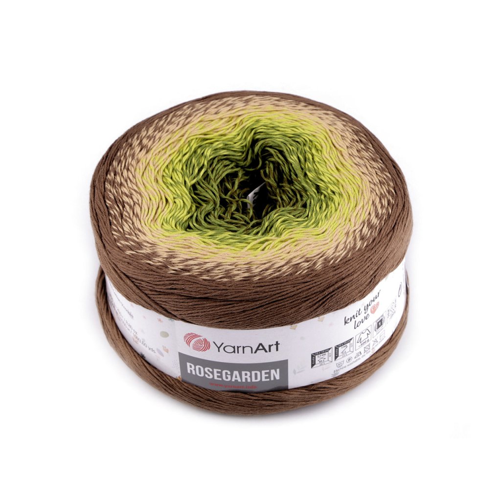 Rosegarden Baumwollstrickgarn ist interessant für seine Farbübergänge , mit denen alle Produkte original aussehen. Es eignet sich zum Stricken und Häkeln von Plaids, Pullovern, Ponchos, Schals usw. Nadelgröße: 2.5 Hakengröße: 3