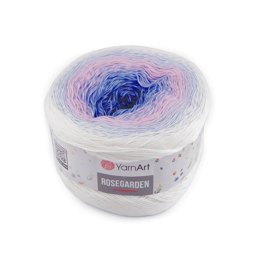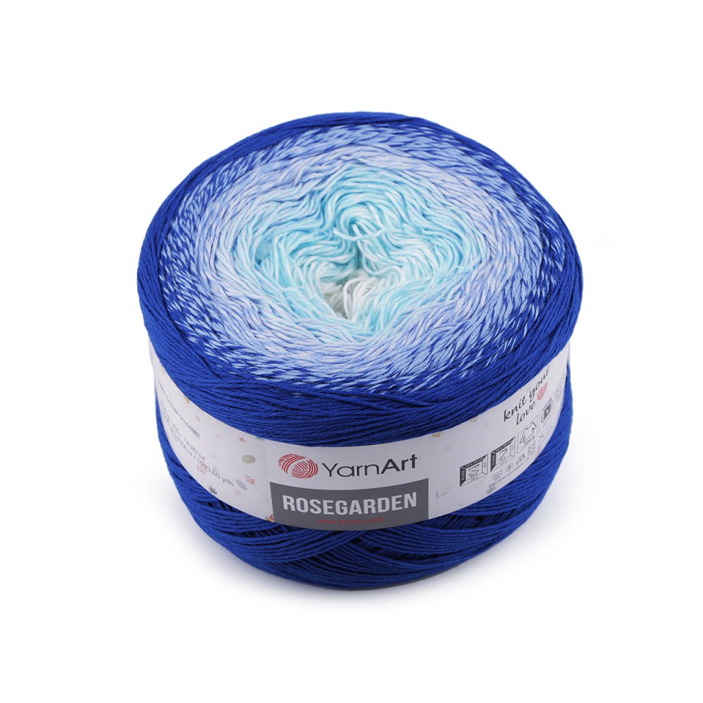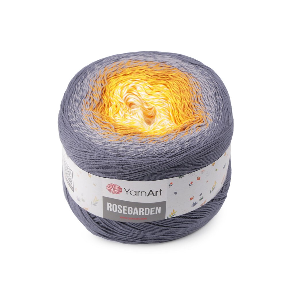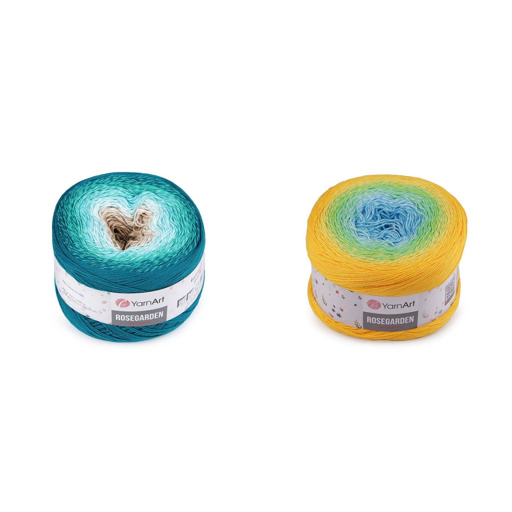Rosegarden Baumwollstrickgarn ist interessant für seine Farbübergänge , mit denen alle Produkte original aussehen. Es eignet sich zum Stricken und Häkeln von Plaids, Pullovern, Ponchos, Schals usw. Nadelgröße: 2.5 Hakengröße: 3