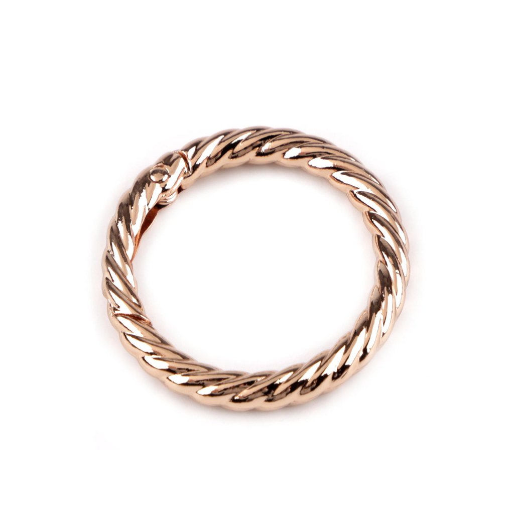 Der runde Karabiner hat eine elegante Form mit einem zarten, gedrehten Dekor , das ihm ein attraktives Aussehen verleiht. Er kann zum Befestigen von Anhängern an einer Handtasche, einem Rucksack, einer Tasche usw. verwendet werden.