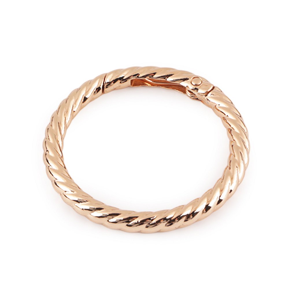 Mit dem runden Designer-Karabiner können Sie Anhänger an Ihrer Handtasche, Ihrem Rucksack, Ihrer Tasche usw. befestigen. Er hat eine elegante Form und ein zartes, gedrehtes Dekor , das ihm ein attraktives Aussehen verleiht.