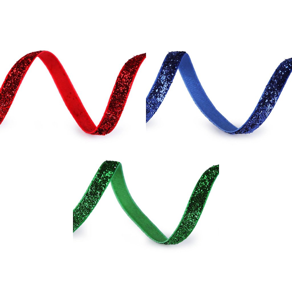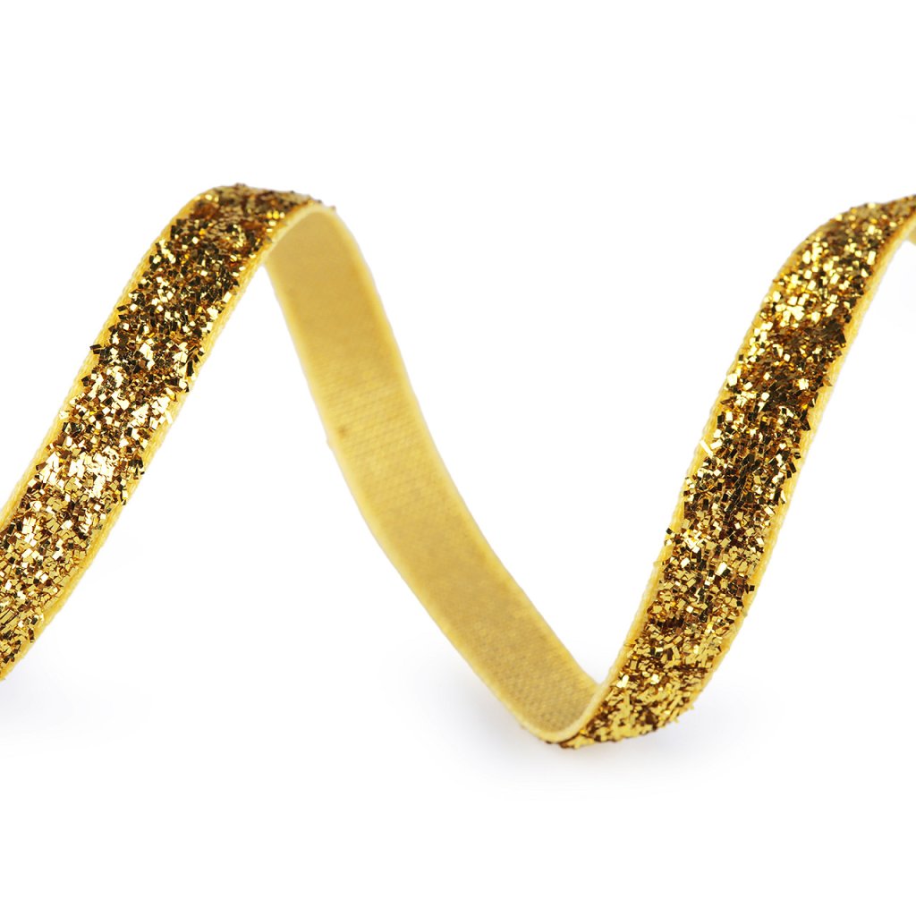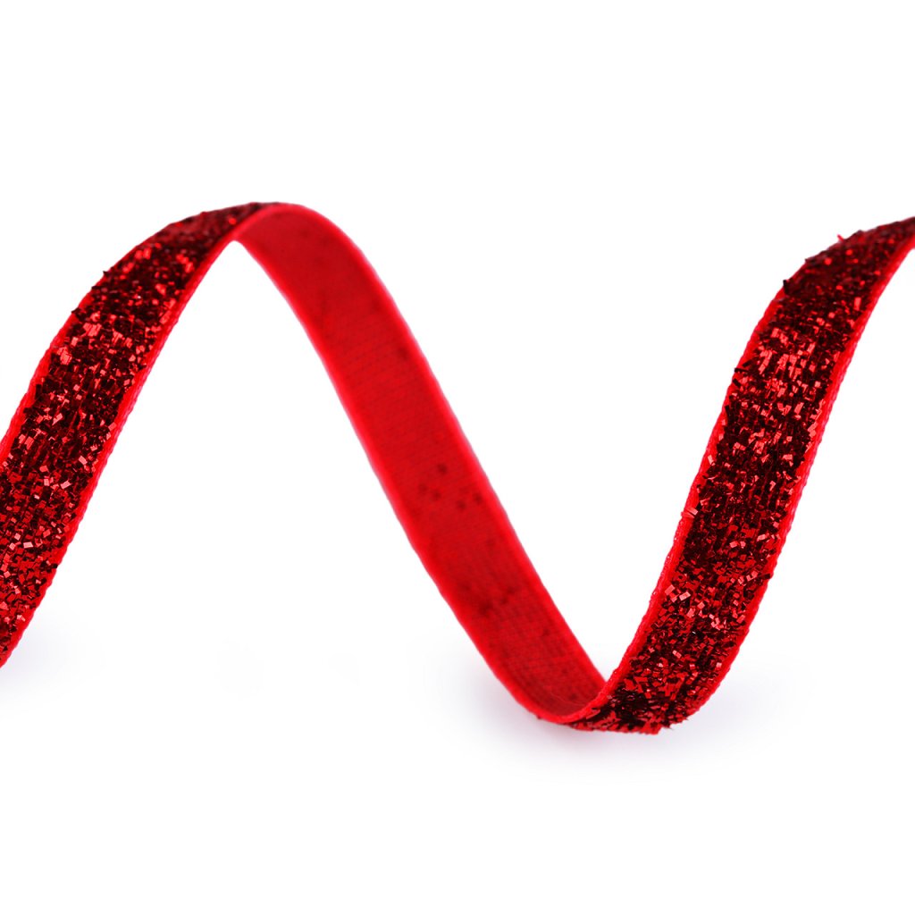 Das glitzernde Samtband ist auf der Oberseite mit Lurex versehen. Es ist sehr fest, hochwertig und einseitig. Verwendung: Sie können das Band zum Verzieren von Karnevalskostümen verwenden. Es ist bei der Herstellung von Modeschmuck beliebt, da es sehr effektvoll ist. Sie können damit Stirnbänder und Halsketten, Halsbänder oder Armbänder herstellen. Sie können es auch zu Dekorationszwecken verwenden, es eignet sich auch für unkonventionelle, aber eindrucksvolle Geschenkverpackungen.