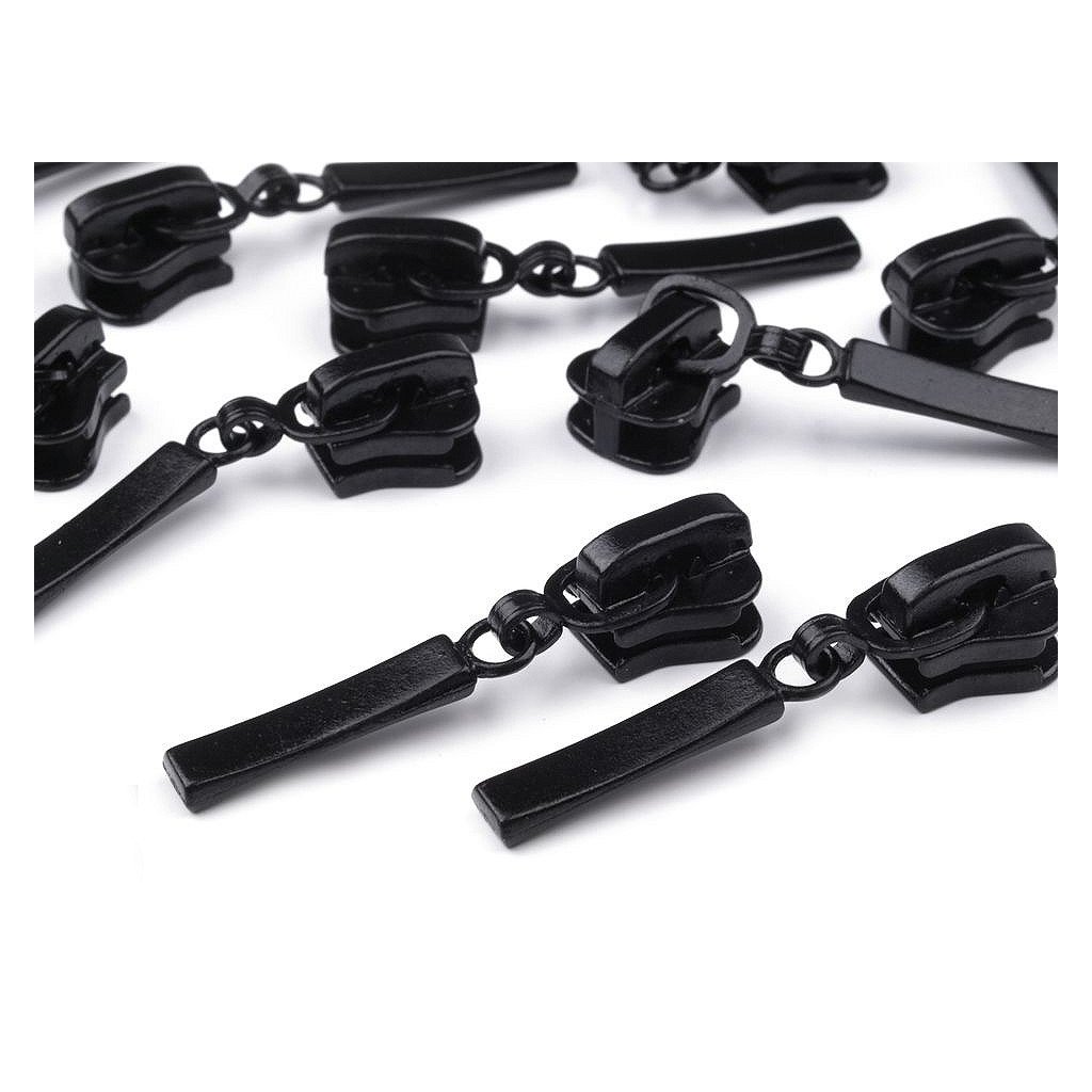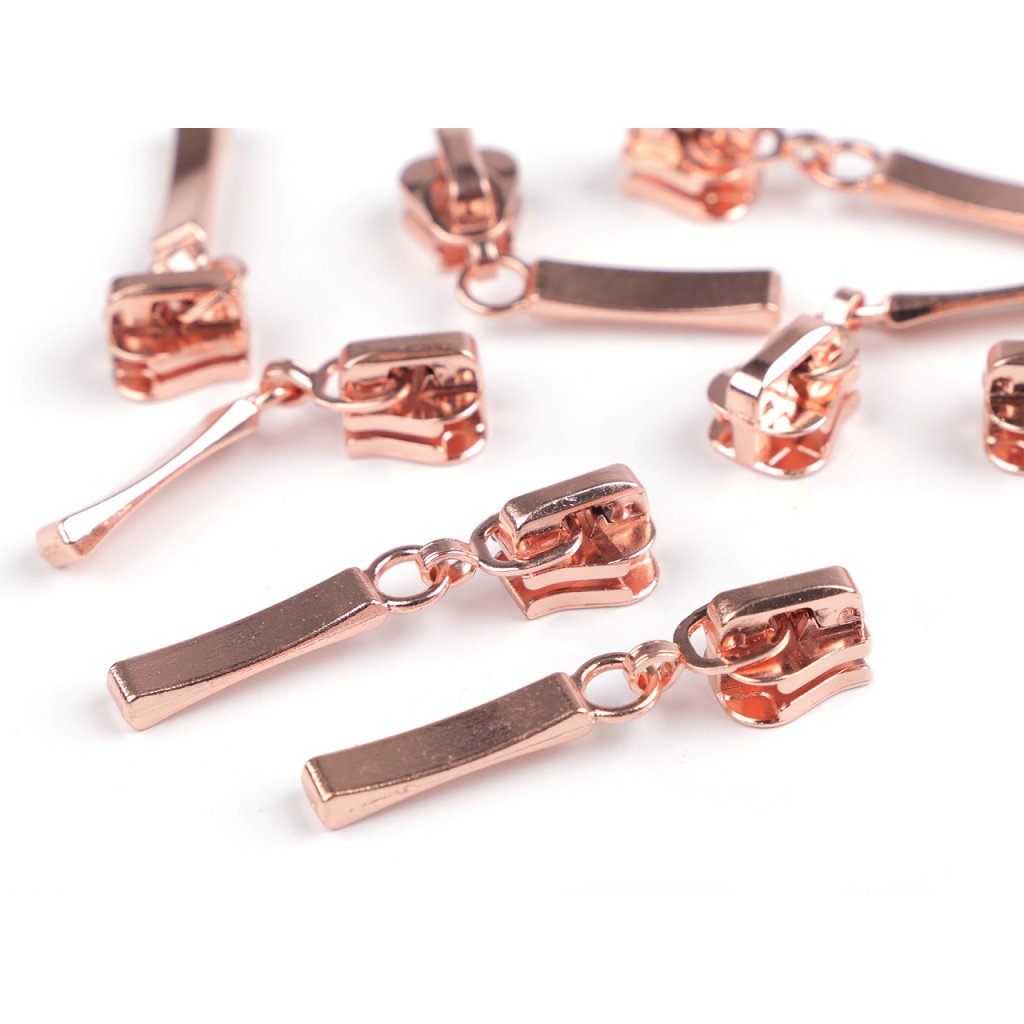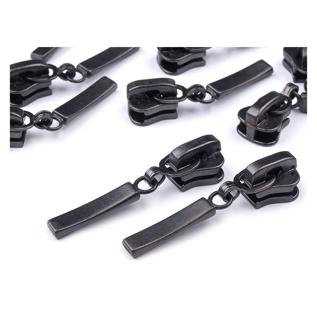 Metallschieber für dekorativen Reißverschluss aus Kunststoff. Dieser Schieber bleibt an Ort und Stelle und öffnet sich nur so weit, wie Sie möchten. Meterweise verkaufte Reißverschlüsse finden Sie unter den Codes 090847, 790837 und 750994.