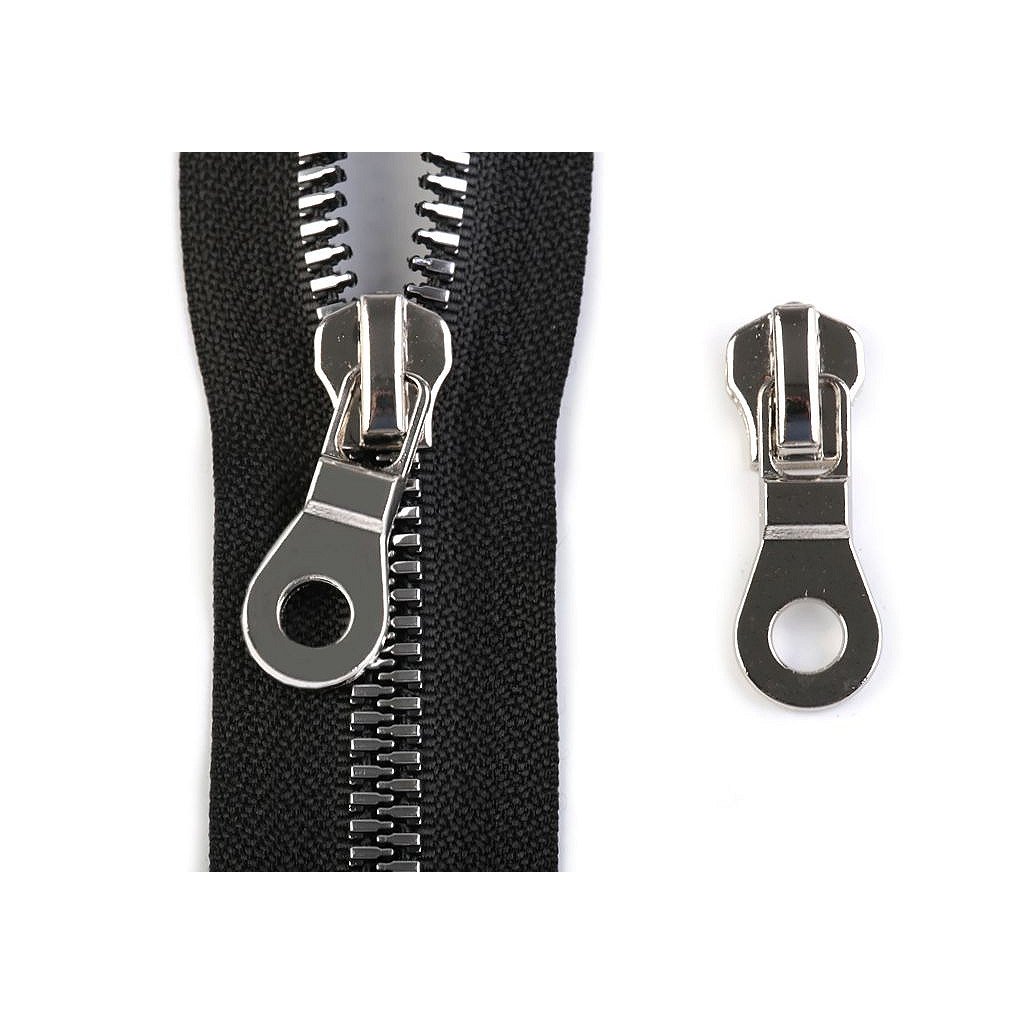 Metallschieber für Krampenreißverschlüsse Breite 8 mm Meterware - unter dem Code 780023.