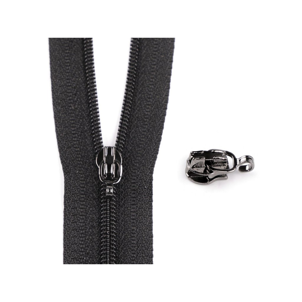 Der Metallschieber ist für den Spiralreißverschluss Nr. 3 im Yard vorgesehen, den Sie bei uns unter der Codenummer 560600, 060714, 050716, 900594, 750678 finden. Er verfügt nicht über einen Puller , sondern nur über einen Haken, an dem Sie je nach eigenem Geschmack oder Bedarf einen Puller anbringen und mit einer Zange (die Sie bei uns unter der Codenummer 070813 oder 090983 finden) andrücken können.