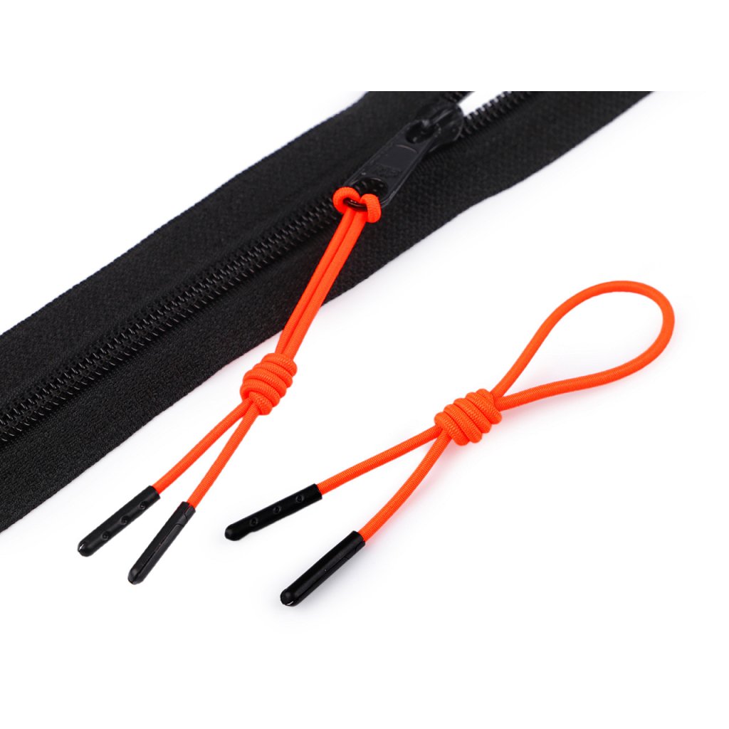 Die Schlaufe dient dazu, den Schieber besser am Reißverschluss zu befestigen. Es hat ein interessantes Design in Form eines Knotens . Es ist flexibel und endet mit Metallenden.
