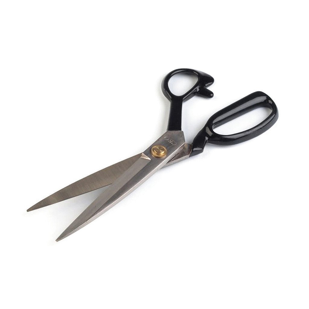 Hochwertige Schneiderschere ist zum Schneiden von verschiedenen Stoffen bestimmt. Sie passt bequem in die Hand. Der Handgriff ist mit gummiertem Bezug für komfortable Manipulation versehen.