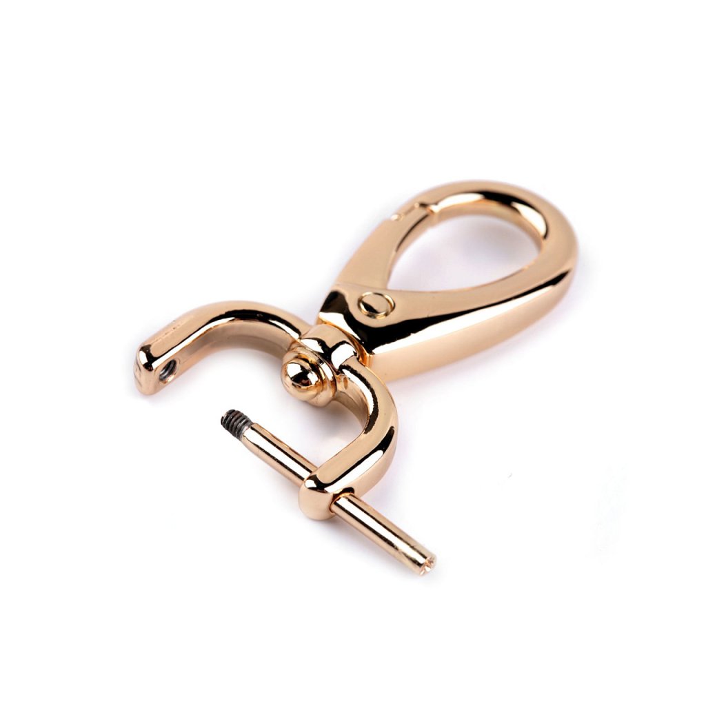 Mit dem drehbaren Metallkarabiner können Sie nicht nur Gurte an Taschen und Geldbörsen befestigen, sondern auch Hundeleinen herstellen. Interessant ist, dass die Gewindestange schraubbar ist.