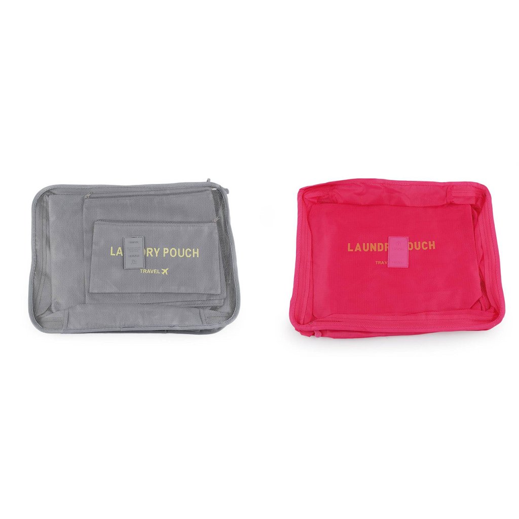 Ein Kofferset aus leichtem Material ist nicht nur unterwegs praktisch. Es hilft dabei, Unterwäsche, Kleidung und andere Dinge systematisch zu sortieren. Auch Schüler in Internaten und Wohnheimen werden es zu schätzen wissen. Es besteht aus 3 geräumigen Textiltaschen mit Netz und Tragegriff mit Reißverschluss und 3 flachen Taschen, die ebenfalls über einen Reißverschluss verfügen. Die Maße der Netzhüllen betragen: 30 x 40 x 11 cm, 28 x 28 x 11 cm und 20 x 30 x 11 cm. Sie sind mit einem Etikett auf dem Netz versehen. Die Maße der flachen Etuis betragen: 25 x 32 cm, 22 x 26 cm und 14 x 25 cm. Sie verfügen über einen Aufdruck auf der Vorderseite.