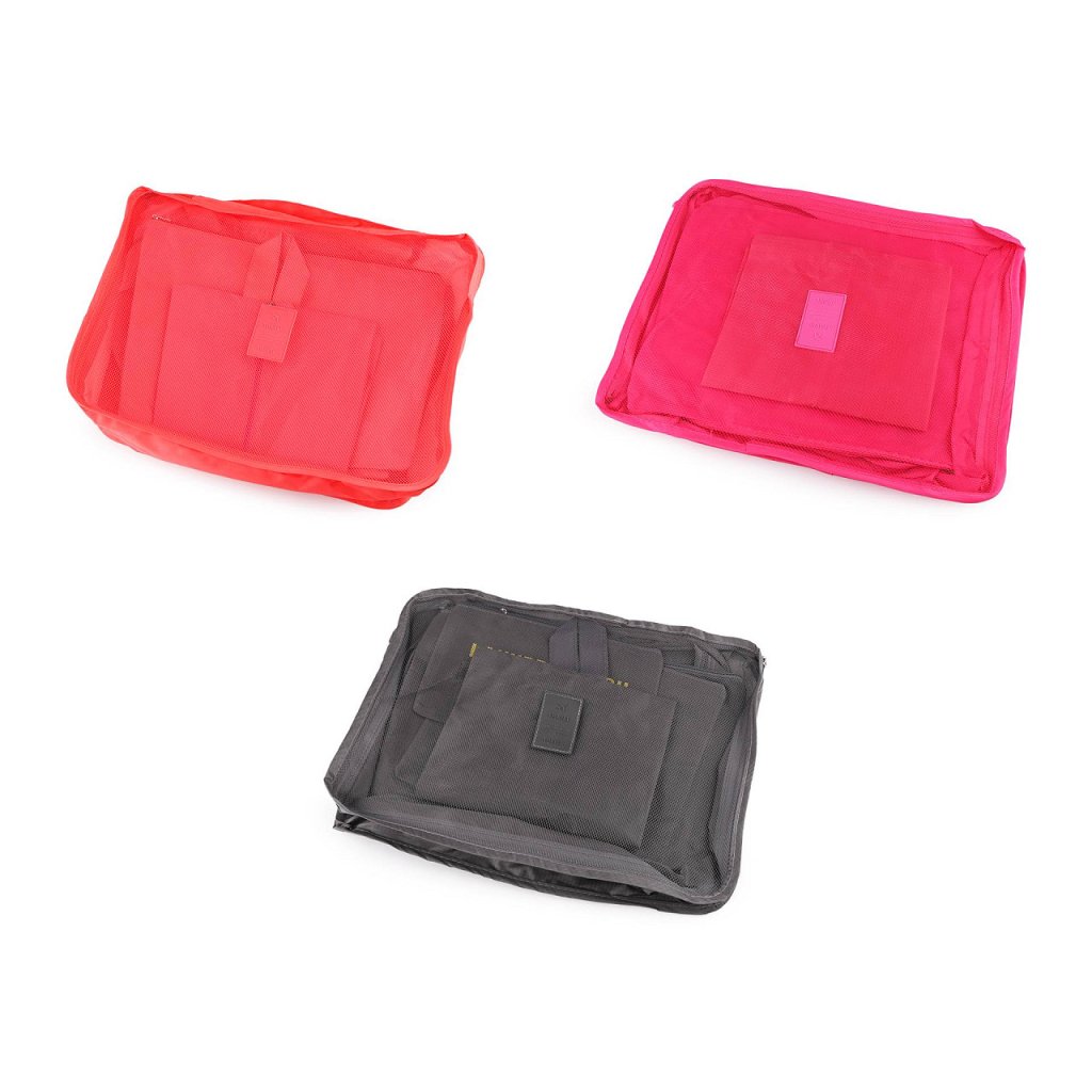 Das Set aus 7 Koffern ist aus festem Material gefertigt. Es ist nicht nur für Reisen praktisch. Die Koffer haben viele interessante Funktionen . Sie helfen dabei, Unterwäsche, Kleidung und andere Dinge systematisch zu sortieren. Dank ihnen können Sie Dinge bequem und übersichtlich in einem Koffer, Rucksack und Schrank verstauen. Sie werden sowohl von Reisenden als auch von Schülern in Internaten und Wohnheimen geschätzt. Das Set besteht aus 3 geräumigen Textiltaschen mit Netz und Tragegriff mit Reißverschluss, 3 Flachtaschen , die ebenfalls mit Reißverschluss schließen und 1 Hängetasche , die in der Mitte mit Reißverschluss schließt. Die Maße der geräumigen Koffer betragen: 30 x 40 x 12 cm, 28 x 31 x 11 cm und 20 x 30 x 11 cm. Die Maße der flachen Etuis betragen: 25 x 34 cm, 23 x 27 cm und 15 x 24 cm. Sie verfügen über einen Aufdruck auf der Vorderseite. Die Maße der Hängetasche betragen 22 x 35 cm. Sie eignet sich zum Beispiel zur Aufbewahrung von Schuhen.