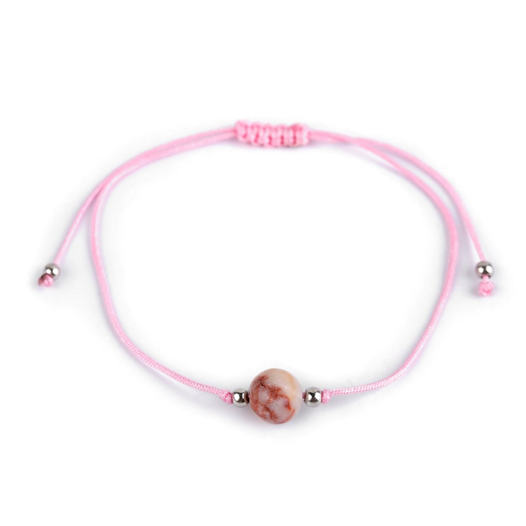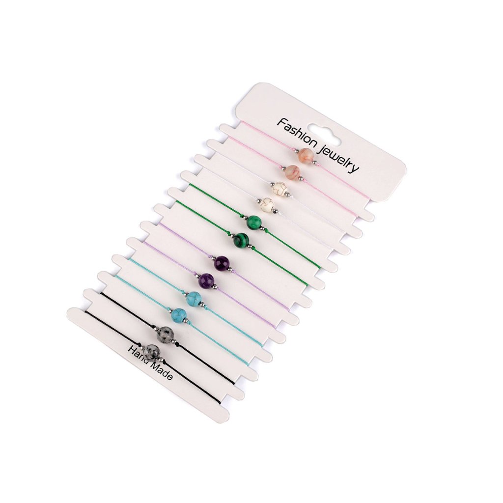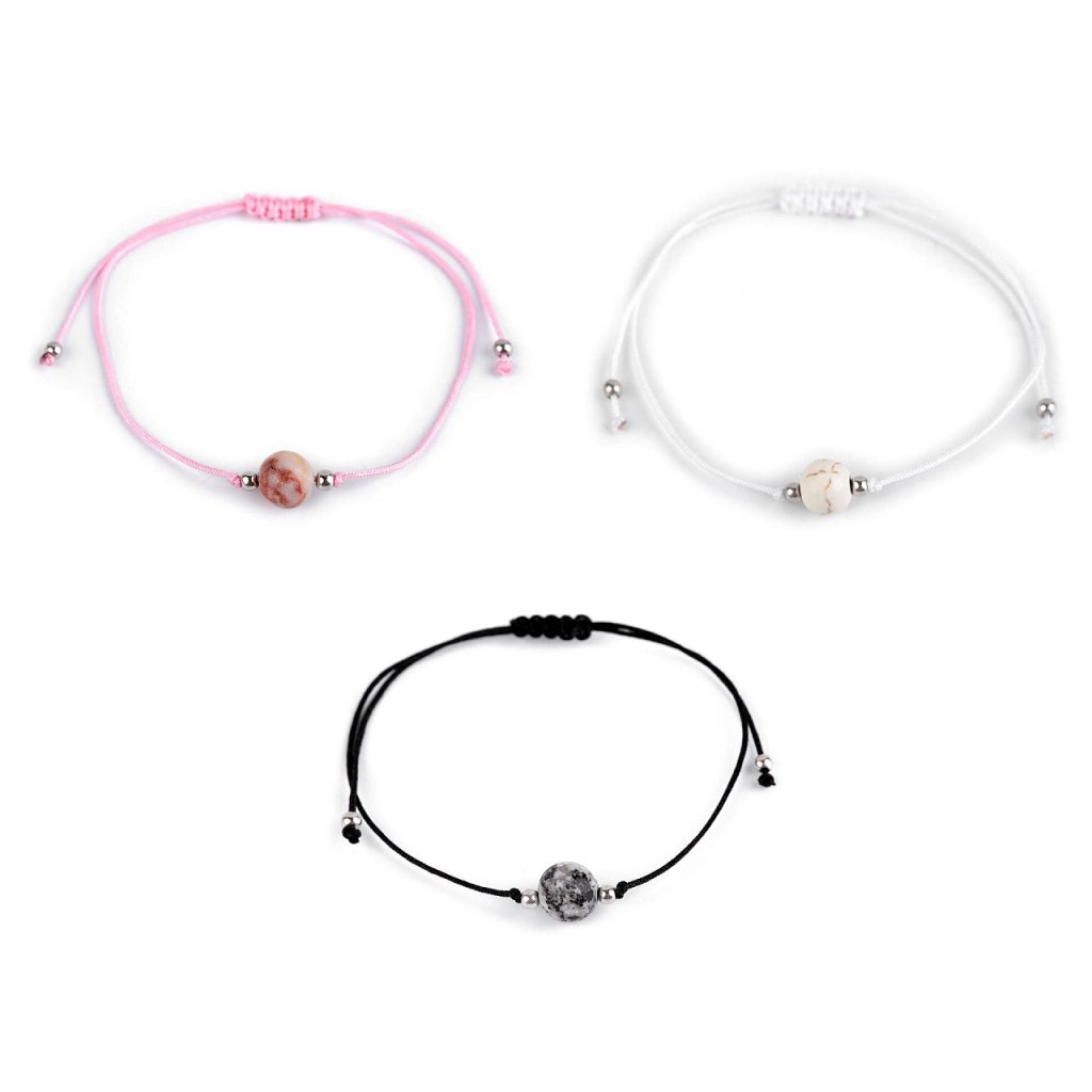 Das Shamballa-Armband mit einer mineralischen Perle ist die ideale Wahl für alle, die ein bequemes und zugleich attraktives Schmuckstück suchen. Es schmückt Ihr Handgelenk mit Kleidern, Blusen, T-Shirts und Badeanzügen. Tragen Sie es allein für einen dezenten Look oder kombinieren Sie es mit anderen Armbändern für einen auffälligeren Effekt. Das Armband besteht aus einer einfachen Kordel und hat einen Schiebeverschluss . Beide Enden des Armbands verlaufen durch einen Makramee-Verbinder, der das Festziehen der Kordeln ermöglicht. Dadurch hat das Armband eine universelle Größe. Der Verkauf erfolgt im 12er-Set auf einer Papierkarte zum Aufhängen, siehe Foto.