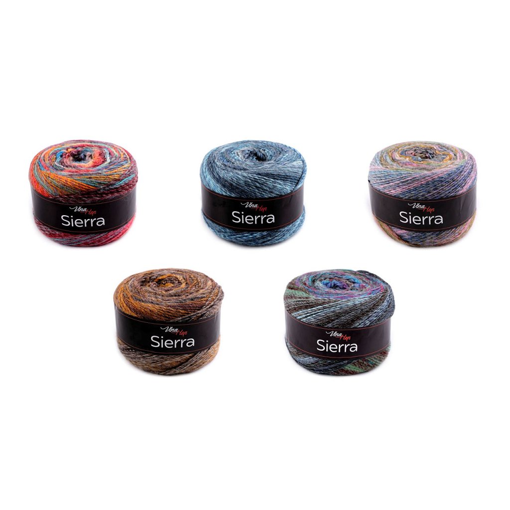 Sierra-Garn verleiht Ihren Produkten dank seiner Farbwirkung einen einzigartigen Look. Das wärmende Material ist für kälteres Wetter geeignet. Aus Garn können Sie Pullover, Tücher, Mützen, Handschuhe, Plaids usw. stricken oder häkeln. Nadelstärke: 4 - 4,5 Hakengröße: 4 - 4,5