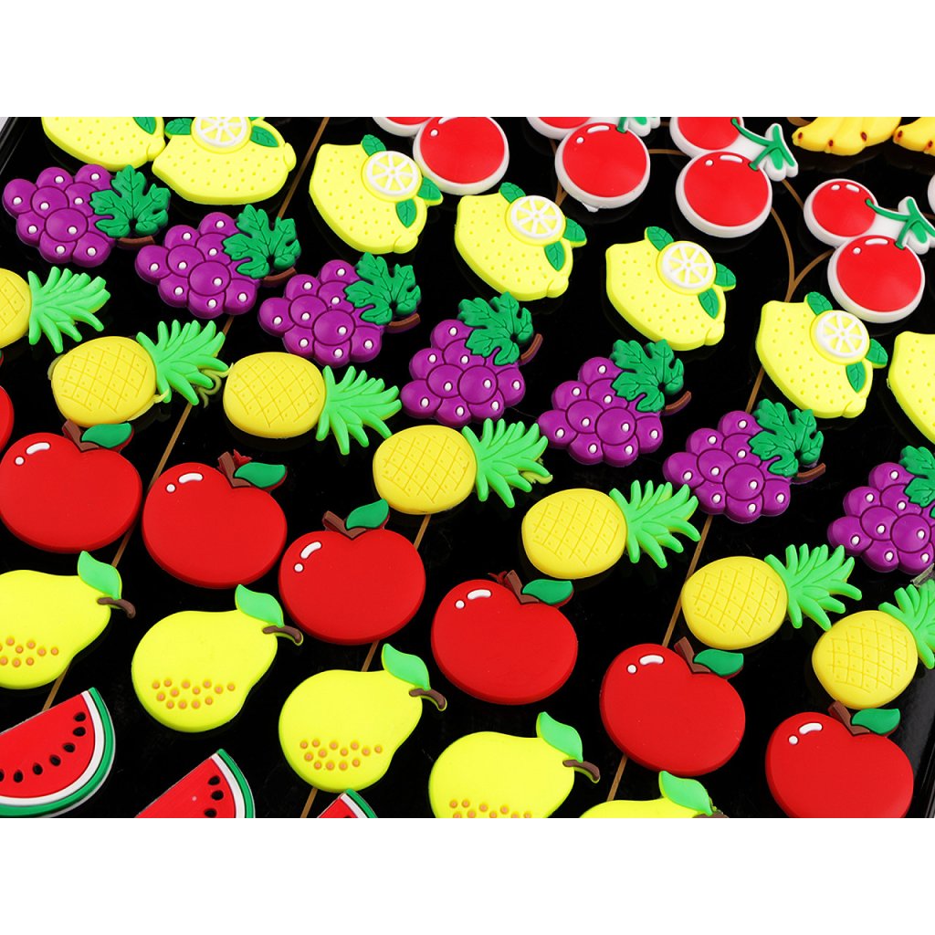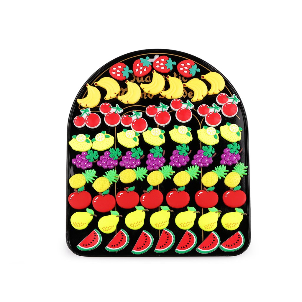 Silikonmagnete mit Fruchtmotiven bestechen durch präzise ausgearbeitete Details und auffällige Farben. Sie lassen sich immer wieder auf jeder Metalloberfläche anbringen . Sie eignen sich perfekt zum Ordnen Ihrer Notizen, Aufgabenlisten oder Fotos. In der Küche können sie eine großartige Möglichkeit sein, Rezepte oder Einkaufslisten im Blick zu behalten. Im Kinderzimmer können sie eine lustige Ergänzung zu einem Aufgabenplan oder als Dekoration auf einer Magnettafel sein, die Fantasie und Kreativität fördert. Die Magnete sind auf einem Metallsockel befestigt, der über eine Bohrung zum Aufhängen an einem Verkaufsständer verfügt. Die Maße betragen 22,5 x 27,5 cm.