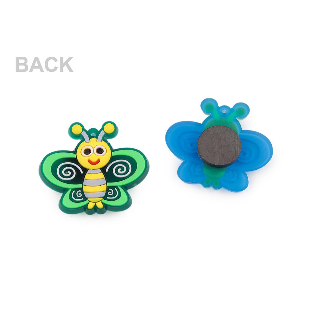 Silikon-Schmetterlingsmagnete sind eindrucksvoll gefärbt und haben präzise verarbeitete Details. Sie können wiederholt an jeder Metalloberfläche befestigt werden , z. B. an Kühlschrank, Wand, Mikrowelle usw. Die Magnete sind auf einem Metallsockel befestigt, der über eine Bohrung zum Aufhängen an einem Verkaufsständer verfügt. Die Maße betragen 22 x 27,5 cm.