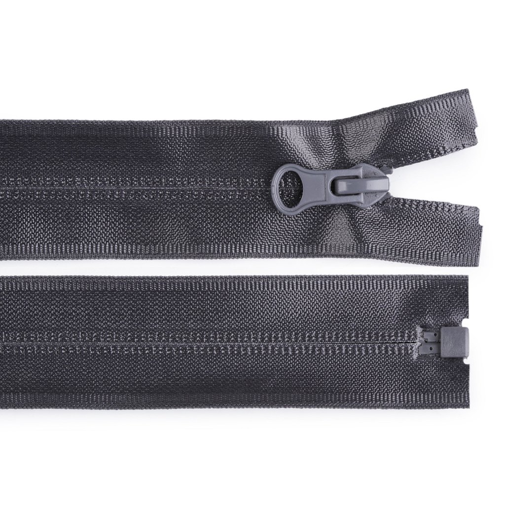 Hochwertige, wasserdichte Reißverschlüsse, geeignet für Outdoor-Bekleidung, die höheren Belastungen ausgesetzt sein soll. Das Reißverschlussende ist nicht aus Kunststoff, nicht einmal farbig.