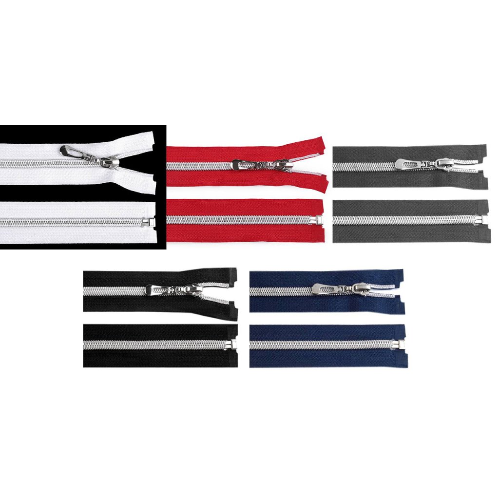 Spirale-Reißverschluss für Jakcen, Mäntel, Sweatjacken oder Sporttaschen. Teilbar, mit silbernen Zähnchen. Der Zipper ist aus nicht magnetischem Metall, die Öse am Zipper ist magnetisch.
