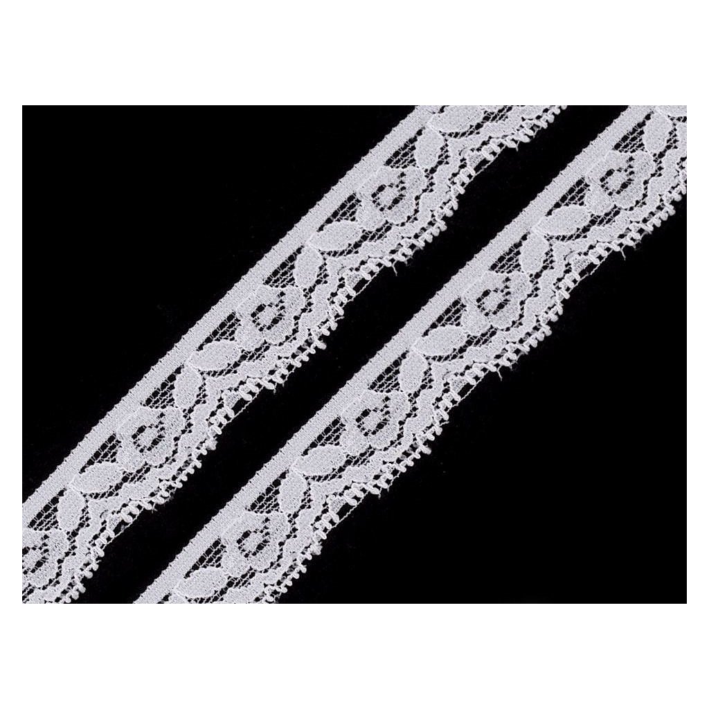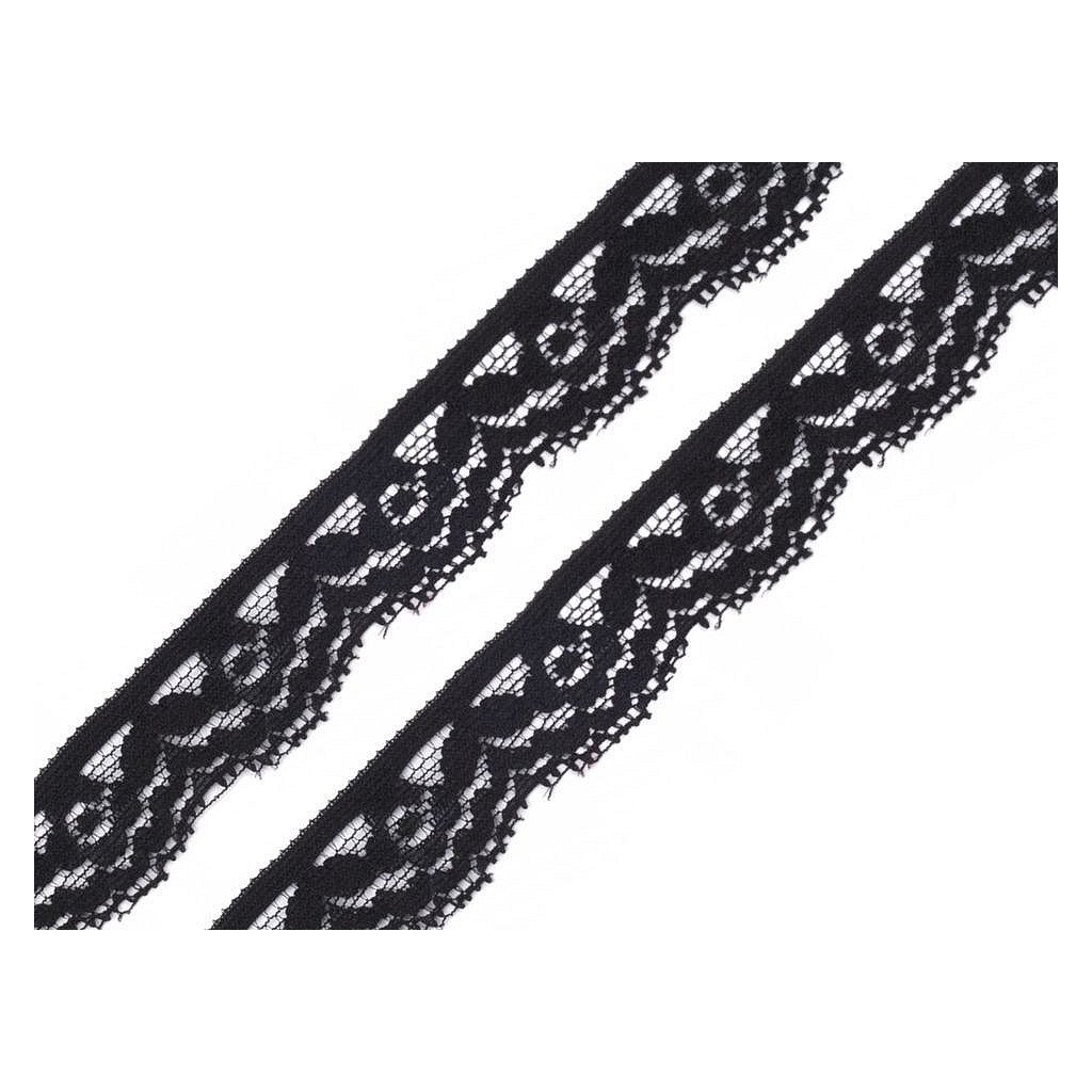 Elastische Spitzeborte aus Polyamid mit Elasthan. Breite 20 mm. Geeignet als Verzierung für Unterwäsche, Tops, Blusen oder für Dekorationen. Es werden Packungen à 25 m geliefert. Vorsicht: Die Borten Nr. 3 und 5 können auch im lauwarmen Wasser abfärben. Die Spitze darf in dem Wickel 4 bis 5mal durchgeschnitten werden. Breite der Spitze darf um ±6 % unterschiedlich sein.