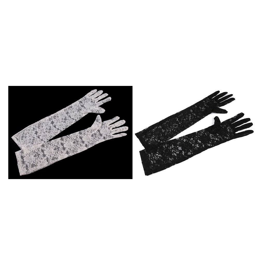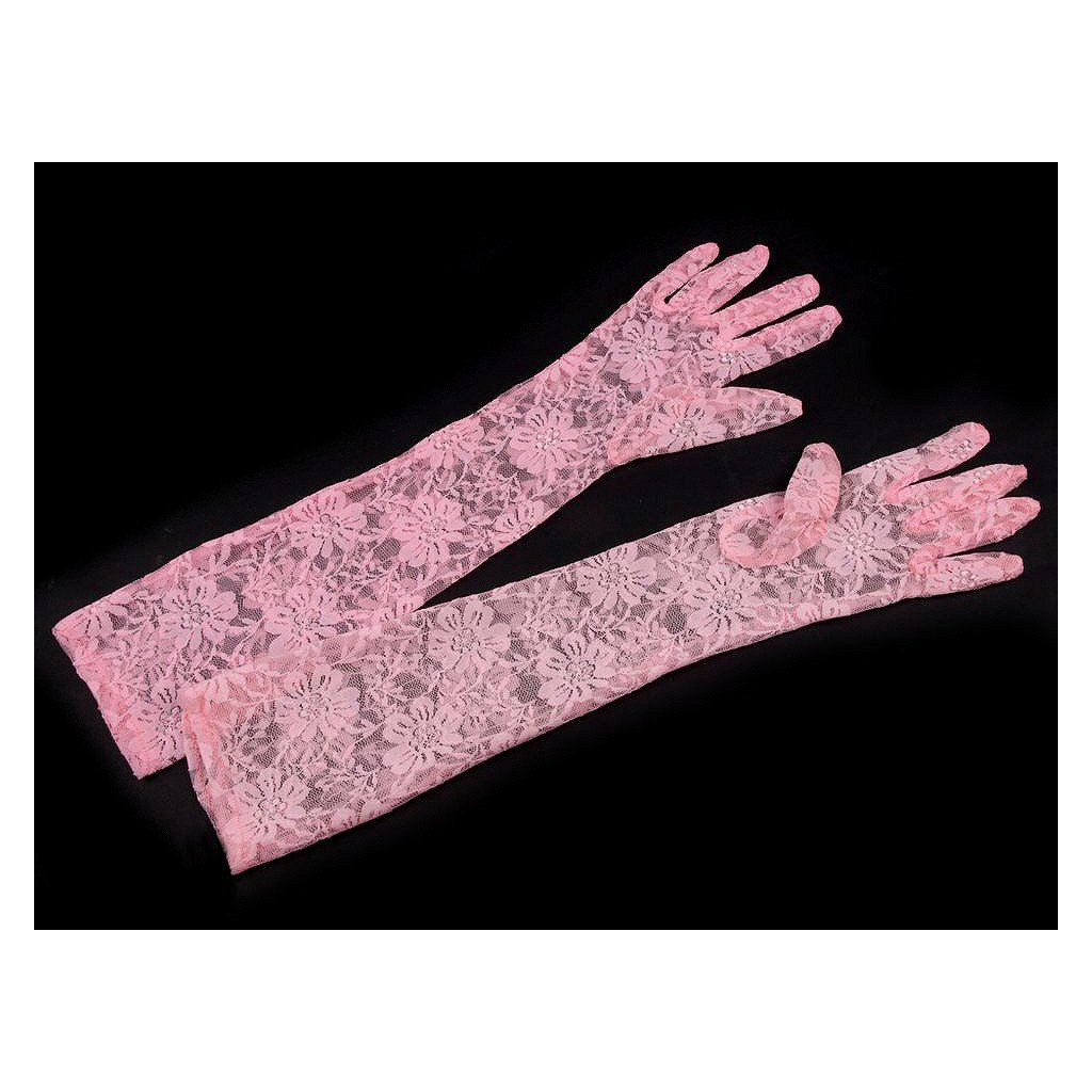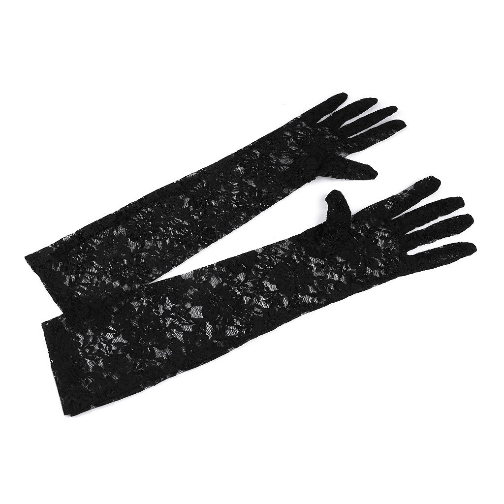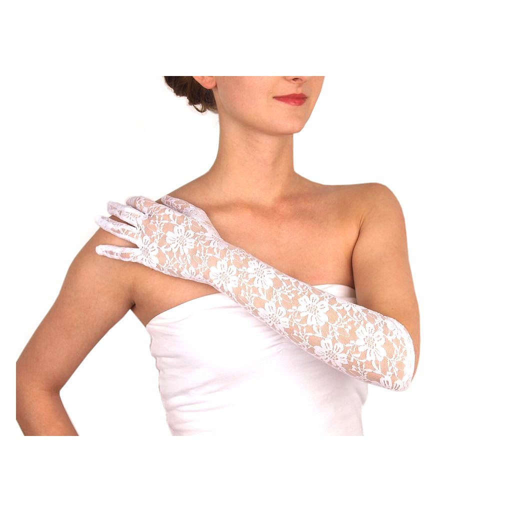 Lange Handschuhe, 43 cm, mit Spitzenmuster. Das Material fühlt sich